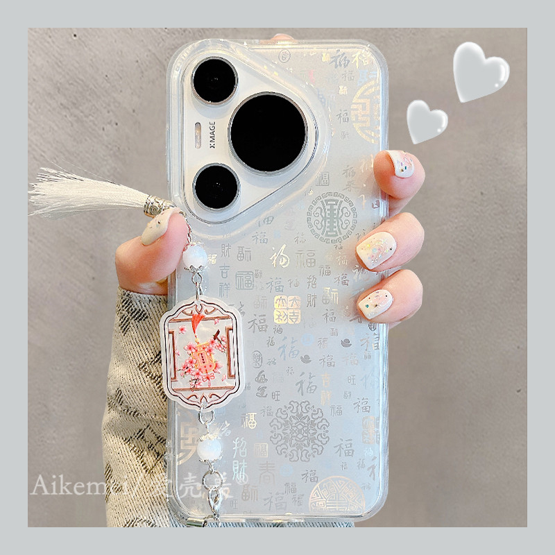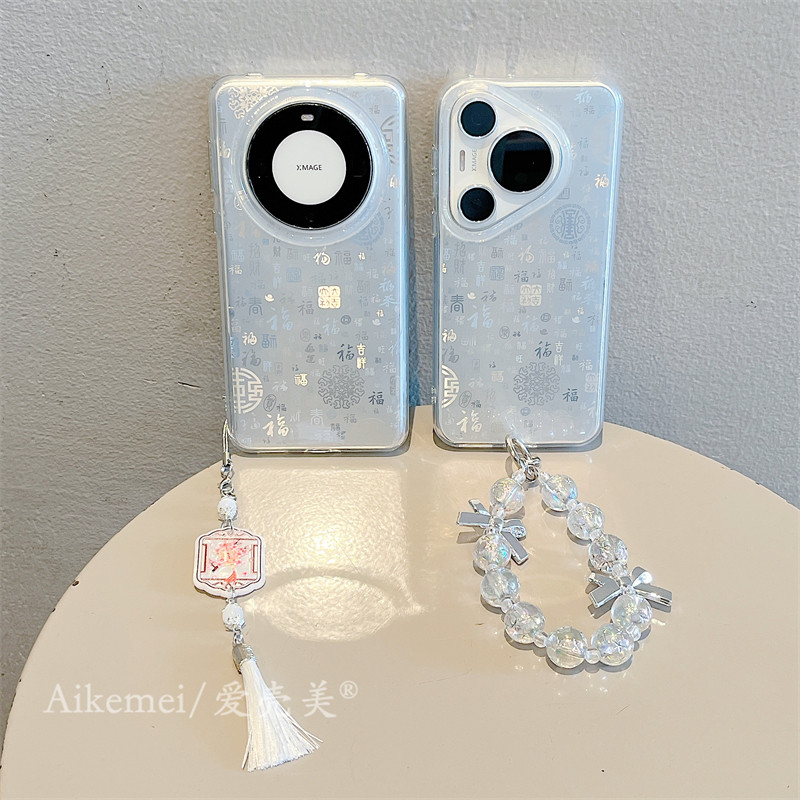 适用华为mate70pro+新款手机壳蛇年新中式银底百福文字Mate60pro流苏挂件mate70全包防摔pura8070pro双层保护