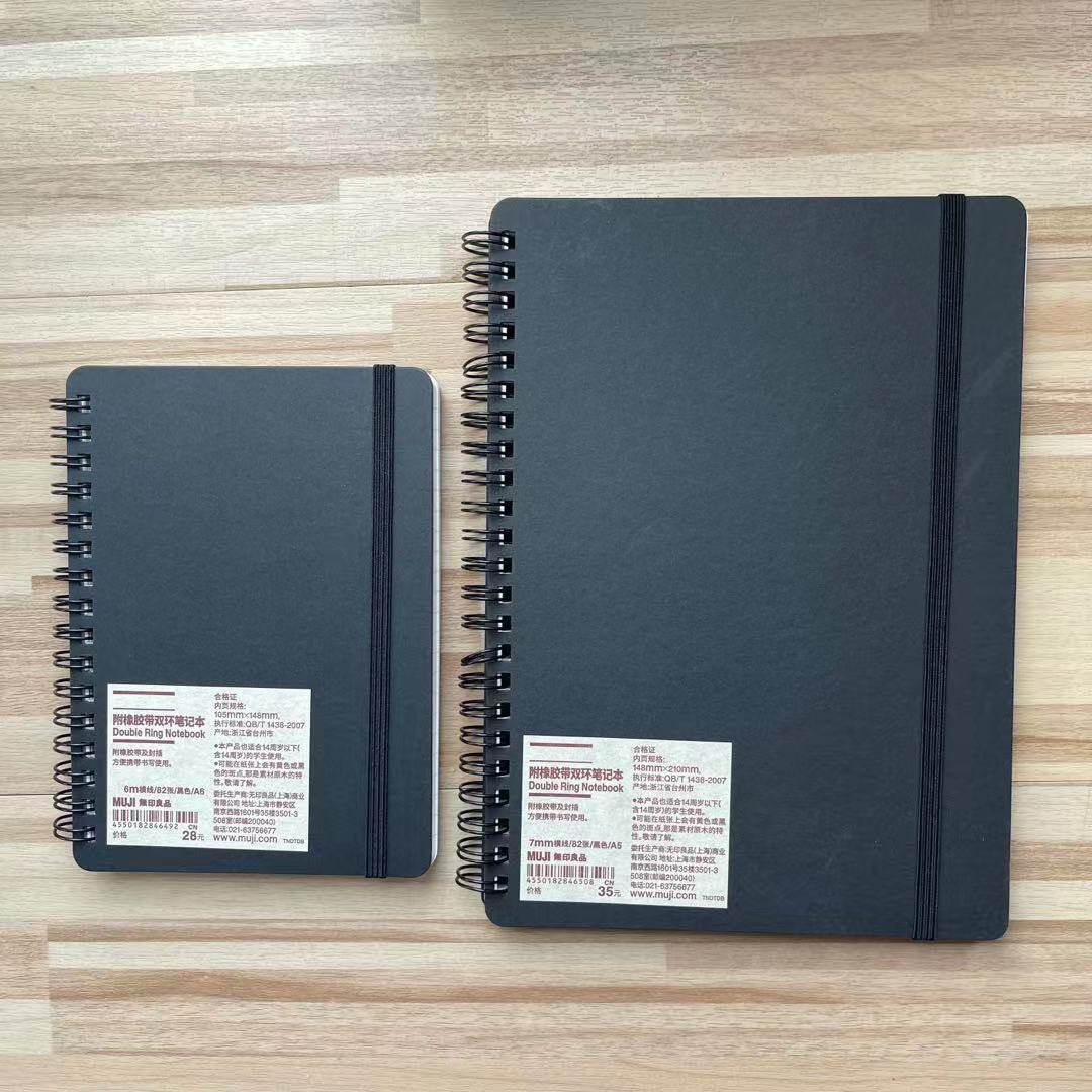 现货 MUJI无印良品 优质纸双环笔记本/附橡胶带 A6/B6/A5 横线
