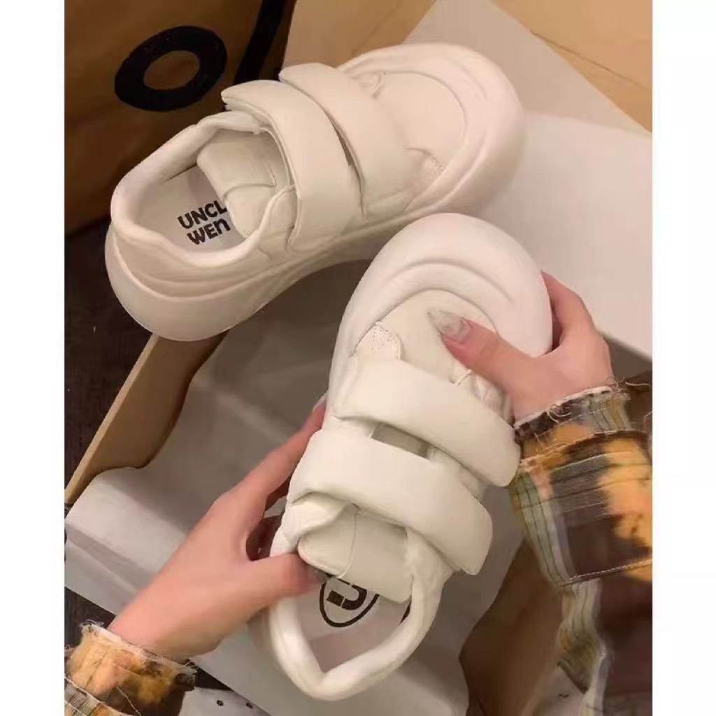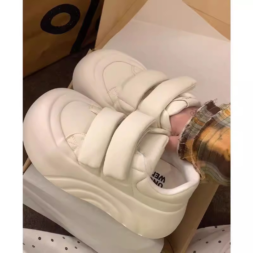 圆头厚底大头鞋女2024秋季魔术贴休闲鞋丑萌运动鞋增高百搭小白鞋