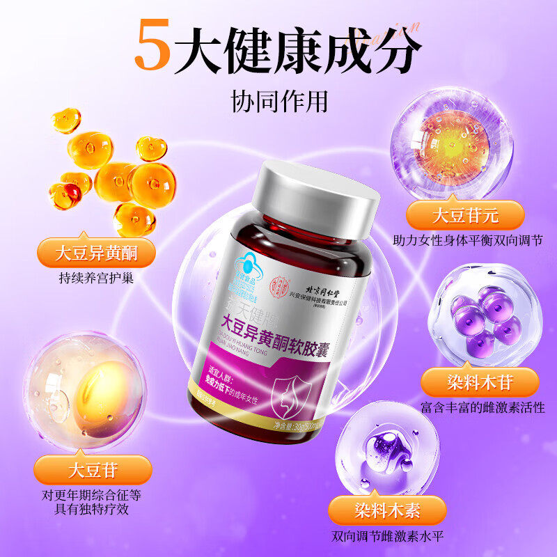 北京同仁堂大豆异黄酮软胶囊补充雌激素调理更年期官方旗舰店正品