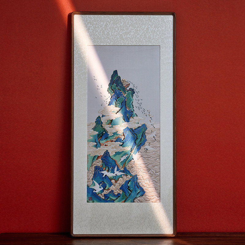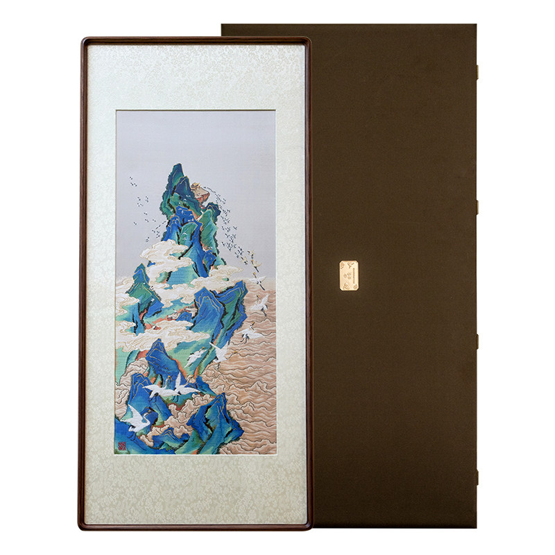海屋朝鹤南京云锦研究所非遗手工真金孔雀羽高档玄关入户装饰挂画