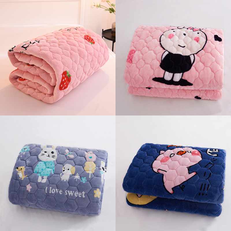 牛奶绒加绒厚毛毯冬季保暖家用床褥垫被珊瑚绒床单三件套床盖床垫