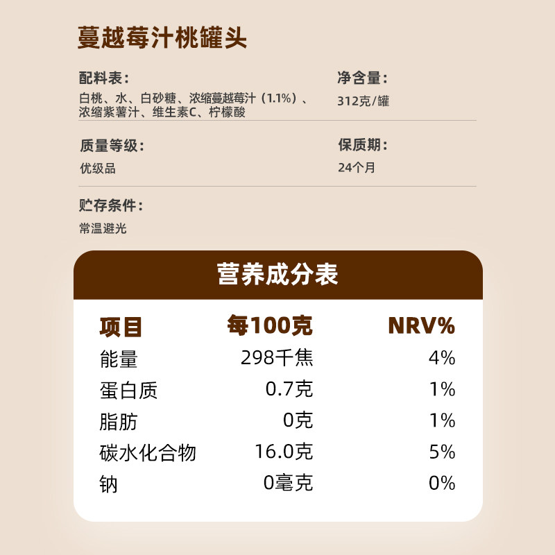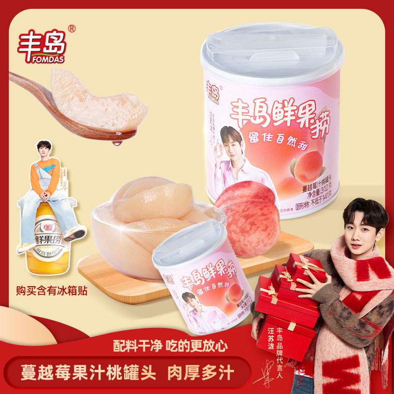 丰岛鲜果捞蔓越莓汁白桃罐头水果罐头312g*6罐整箱水果罐头