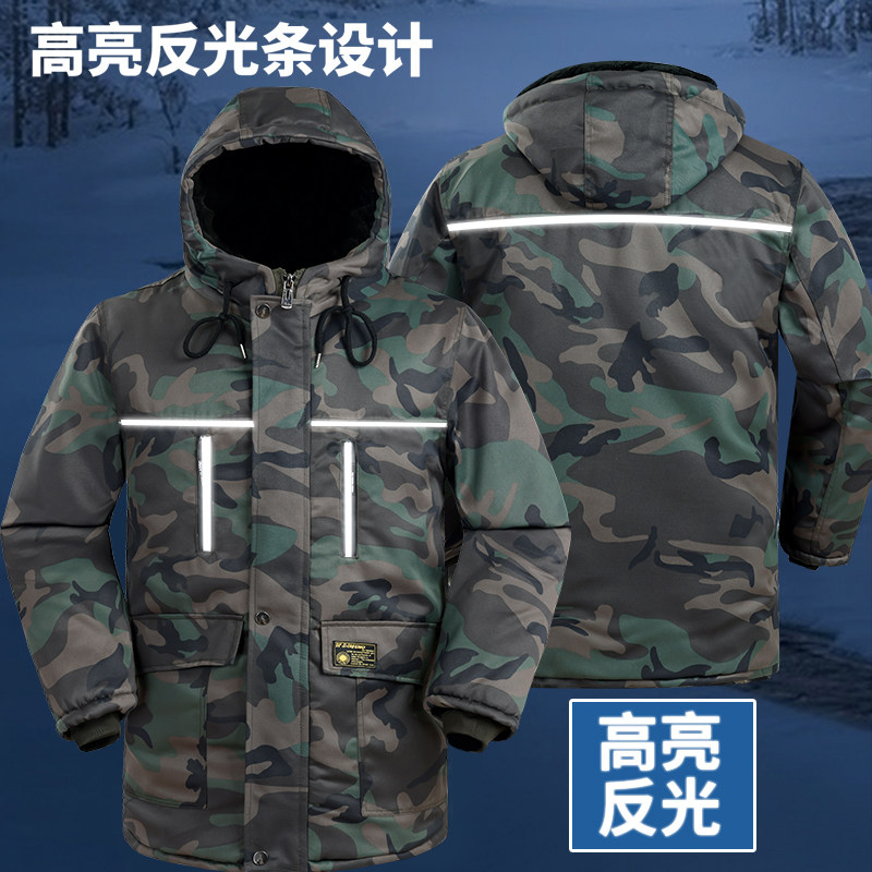 冬季加绒加厚防水迷彩棉衣劳保棉袄冷库防寒服大码耐磨连帽工作服