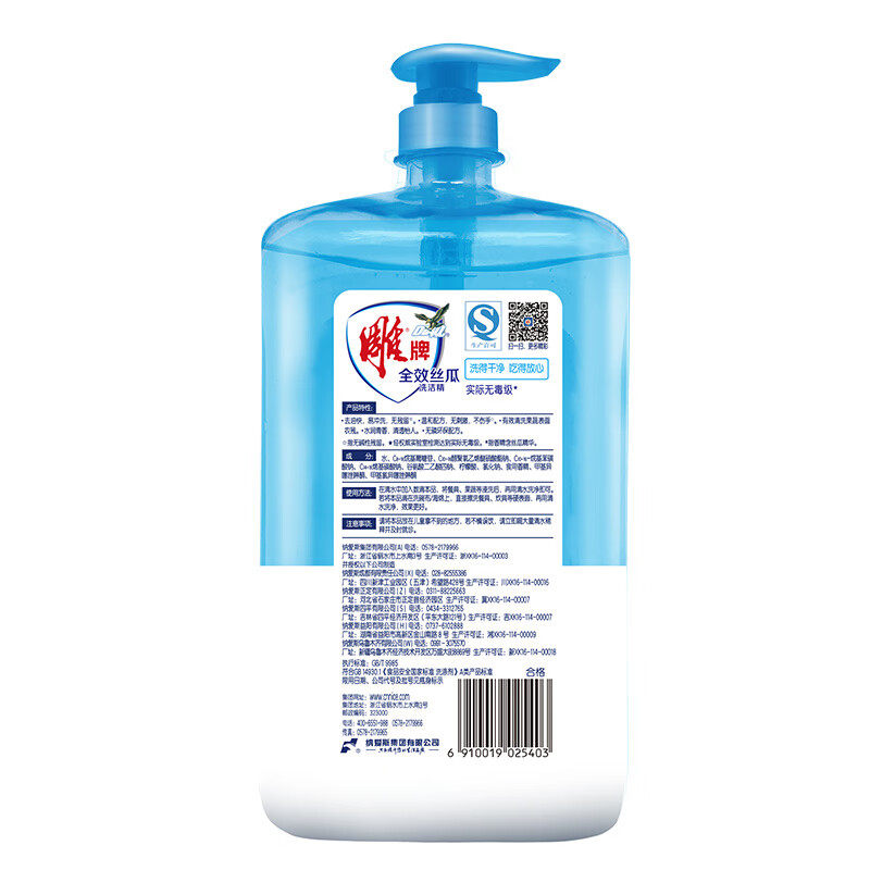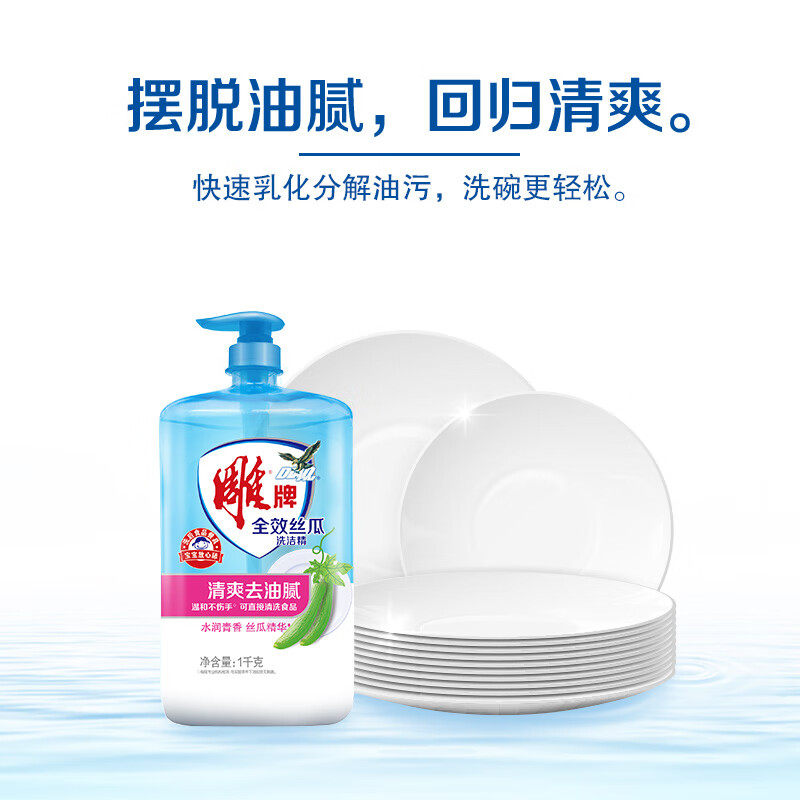 雕牌全效丝瓜洗洁精1kg瓶装食品级去油果蔬餐具洗涤剂洗碗不伤手