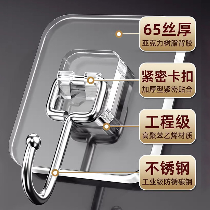 挂钩强力粘胶墙壁贴厨房承重透明无痕挂勾贴钩免打孔钩子门后粘钩