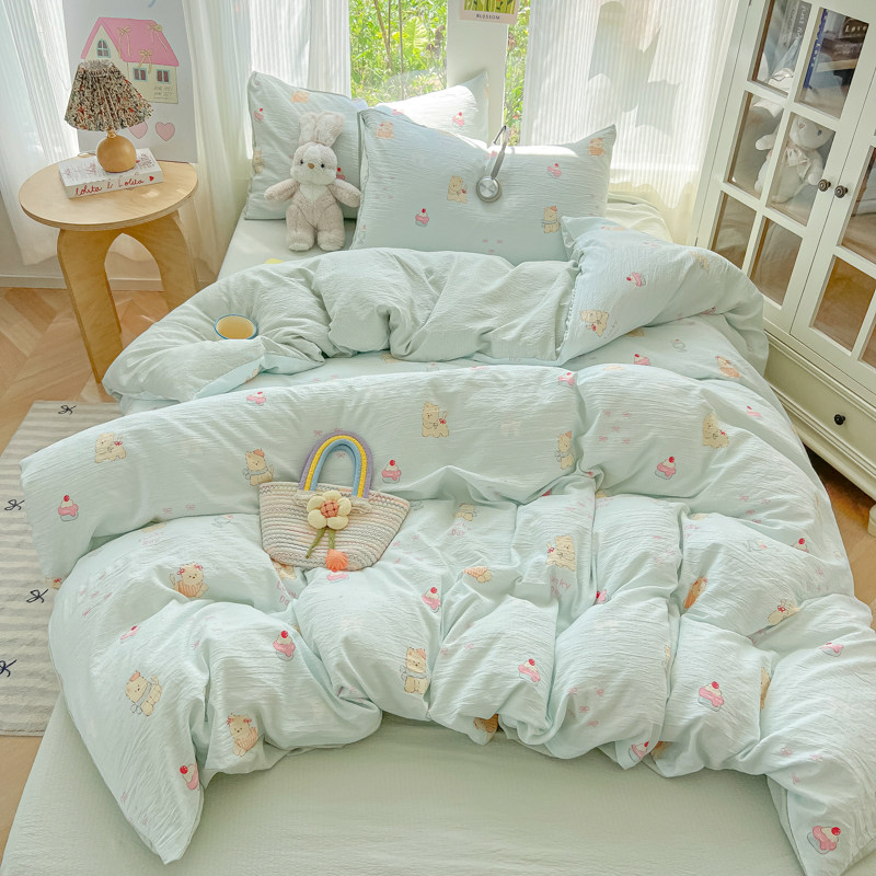 A类双层纱布纯棉四件套床上全棉被罩床单被套新款学生宿舍三件套4