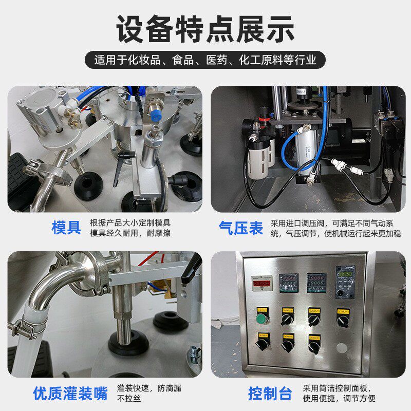 护手霜膏体软管灌装封尾机 铝塑全自动洗面乳BB霜定量分装封口机