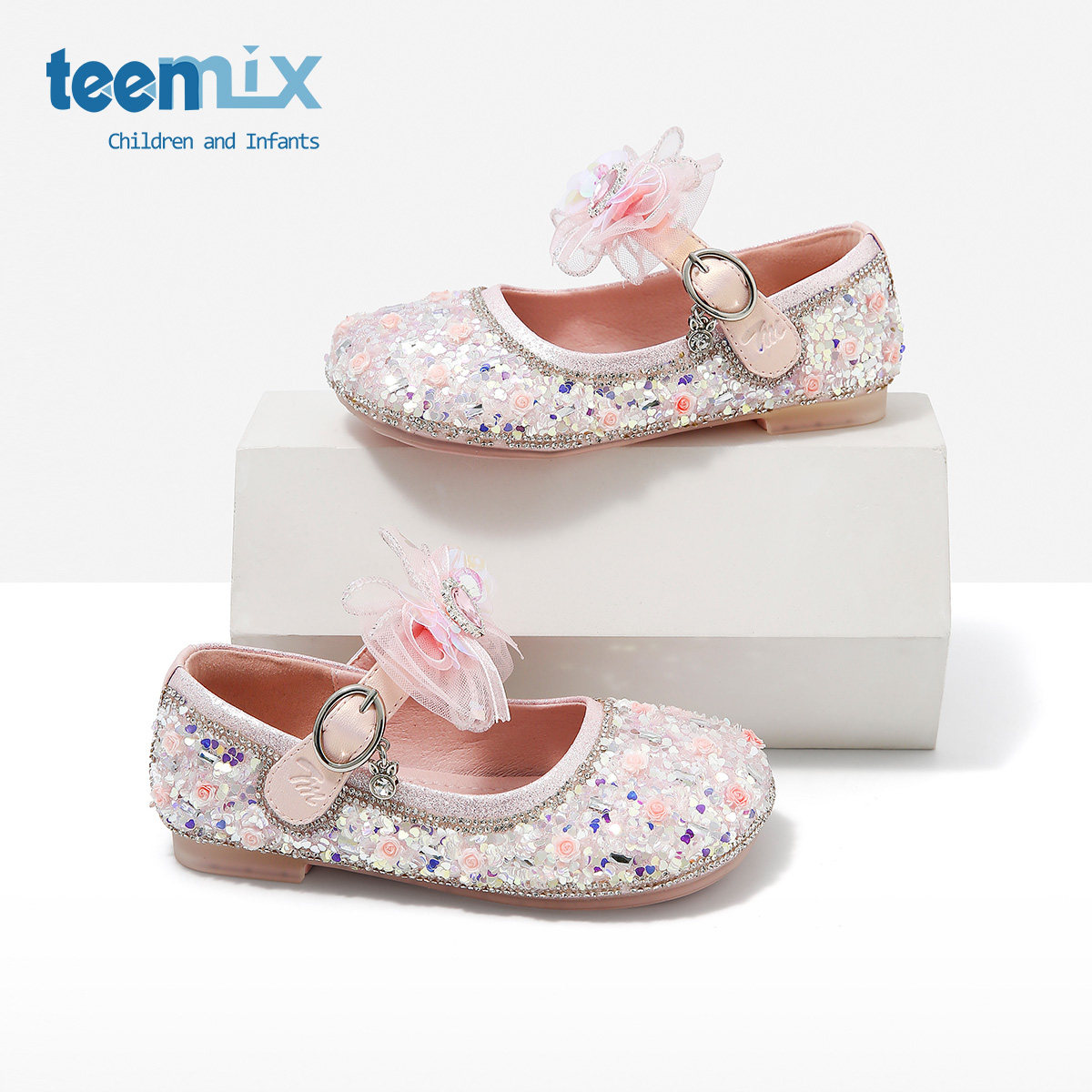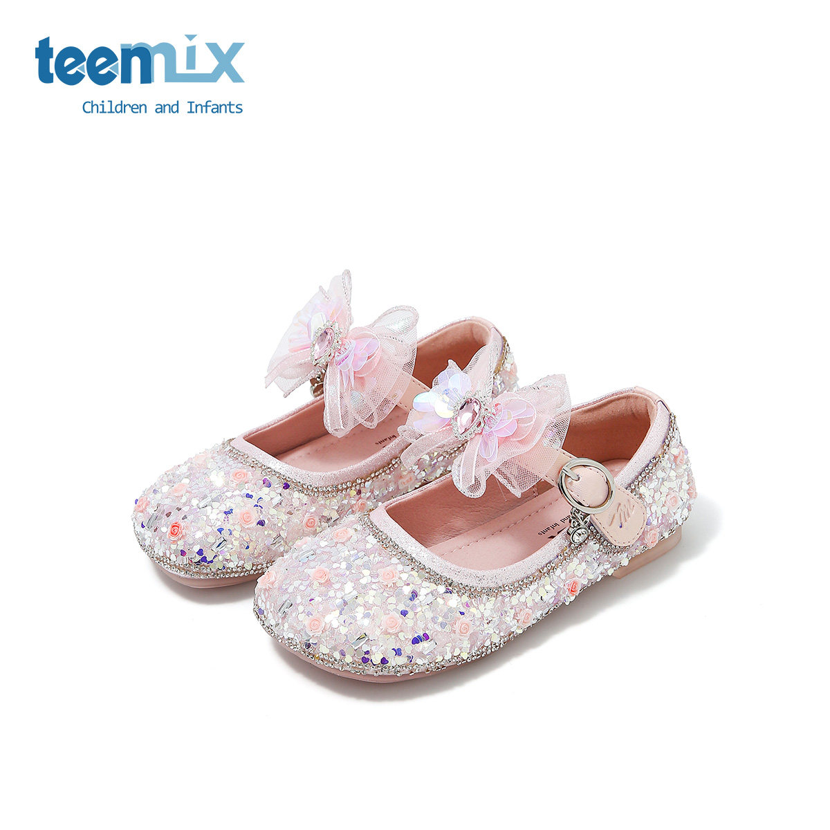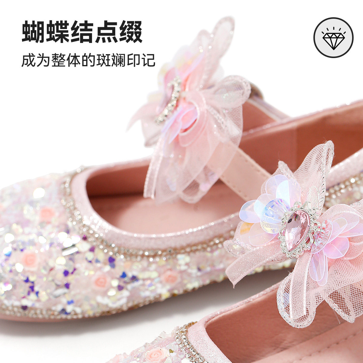 天美意儿童鞋2026春秋新款小皮鞋水晶鞋小女孩女童礼服软底公主鞋