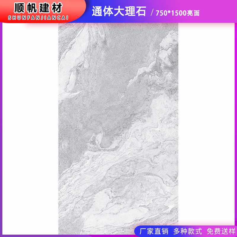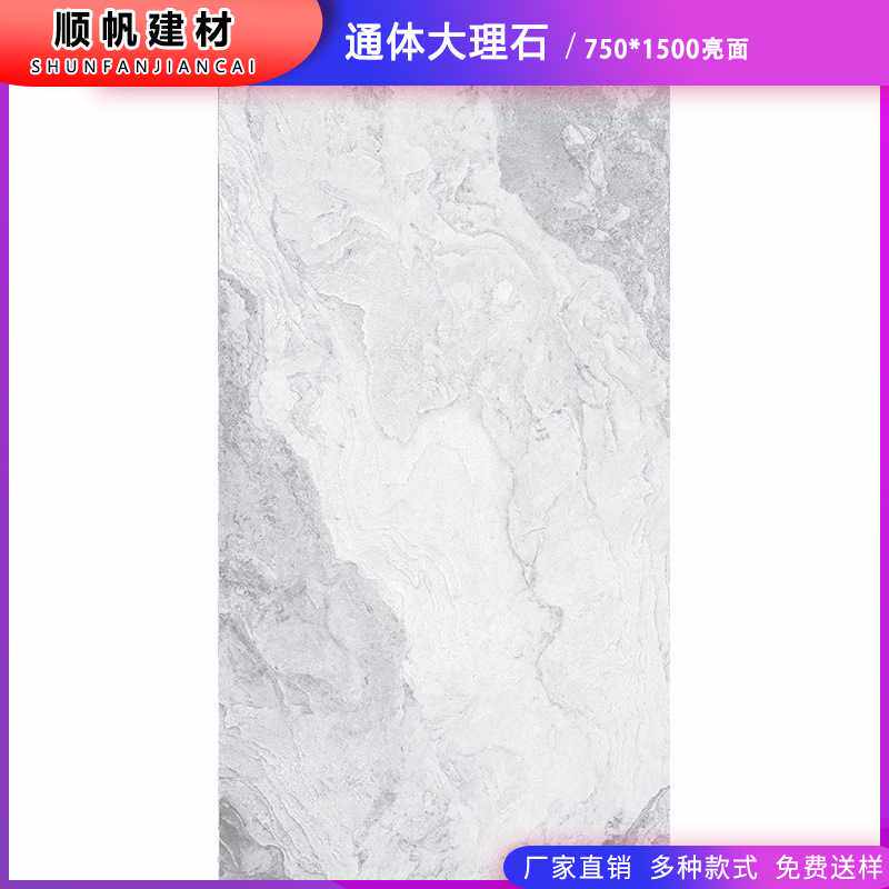 佛山750x1500mm通体大理石瓷砖灰色水纹地砖墙砖客厅餐厅柔光砖