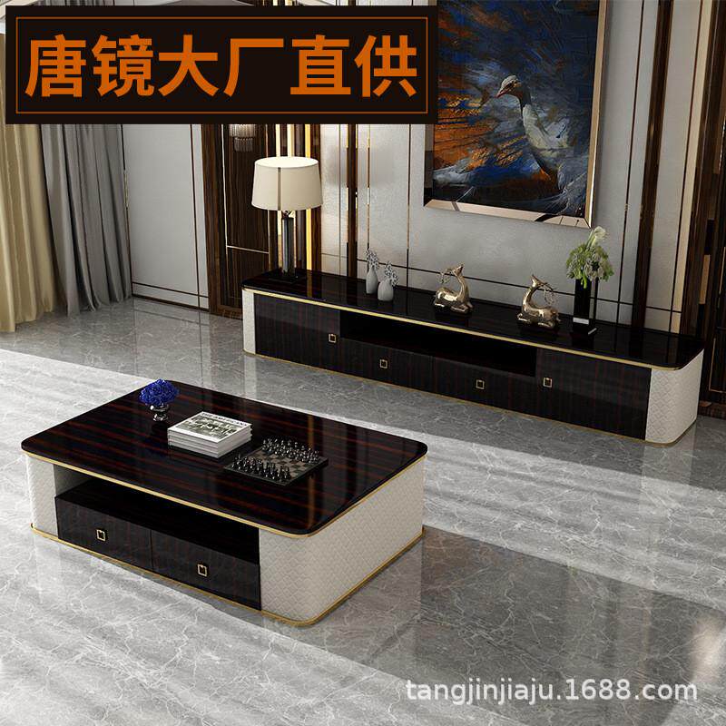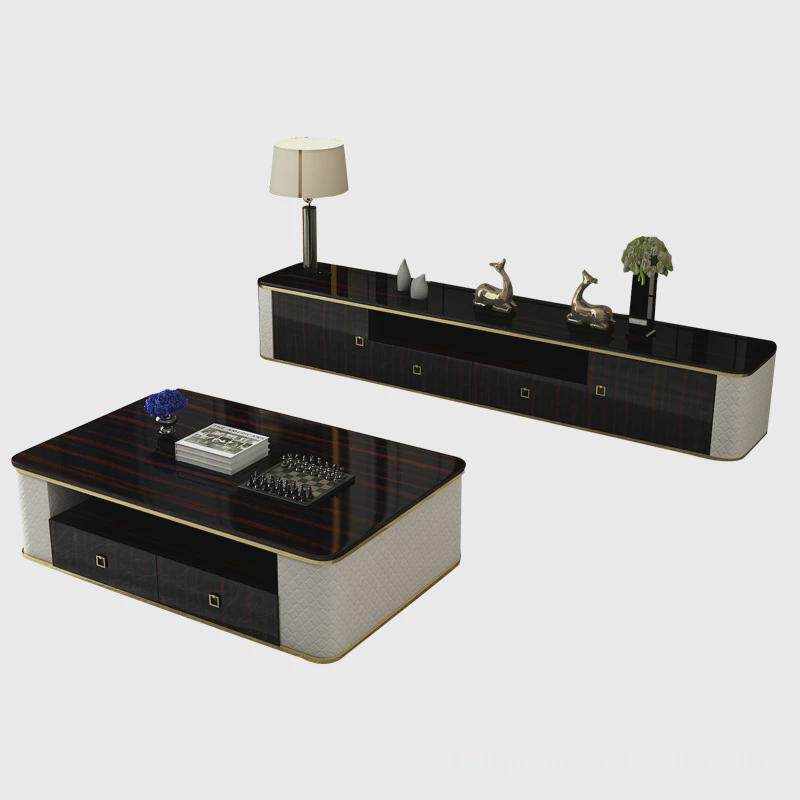 后现代轻奢茶几电视柜组合黑檀意色式简约港式风大气奢华客厅家具