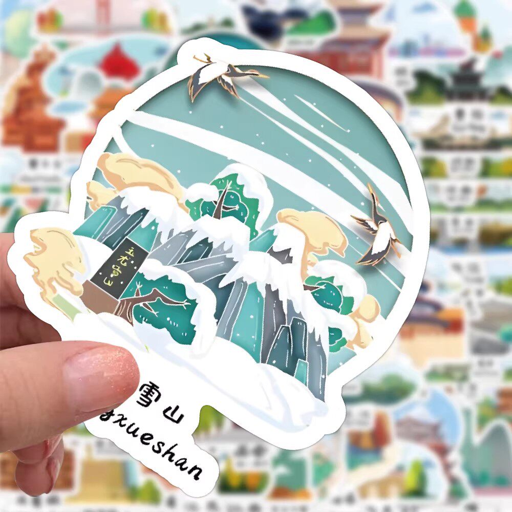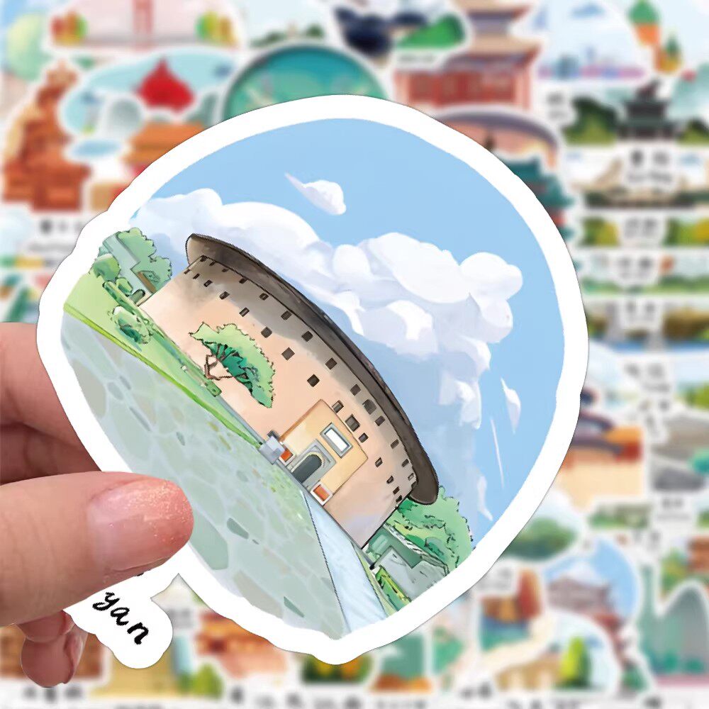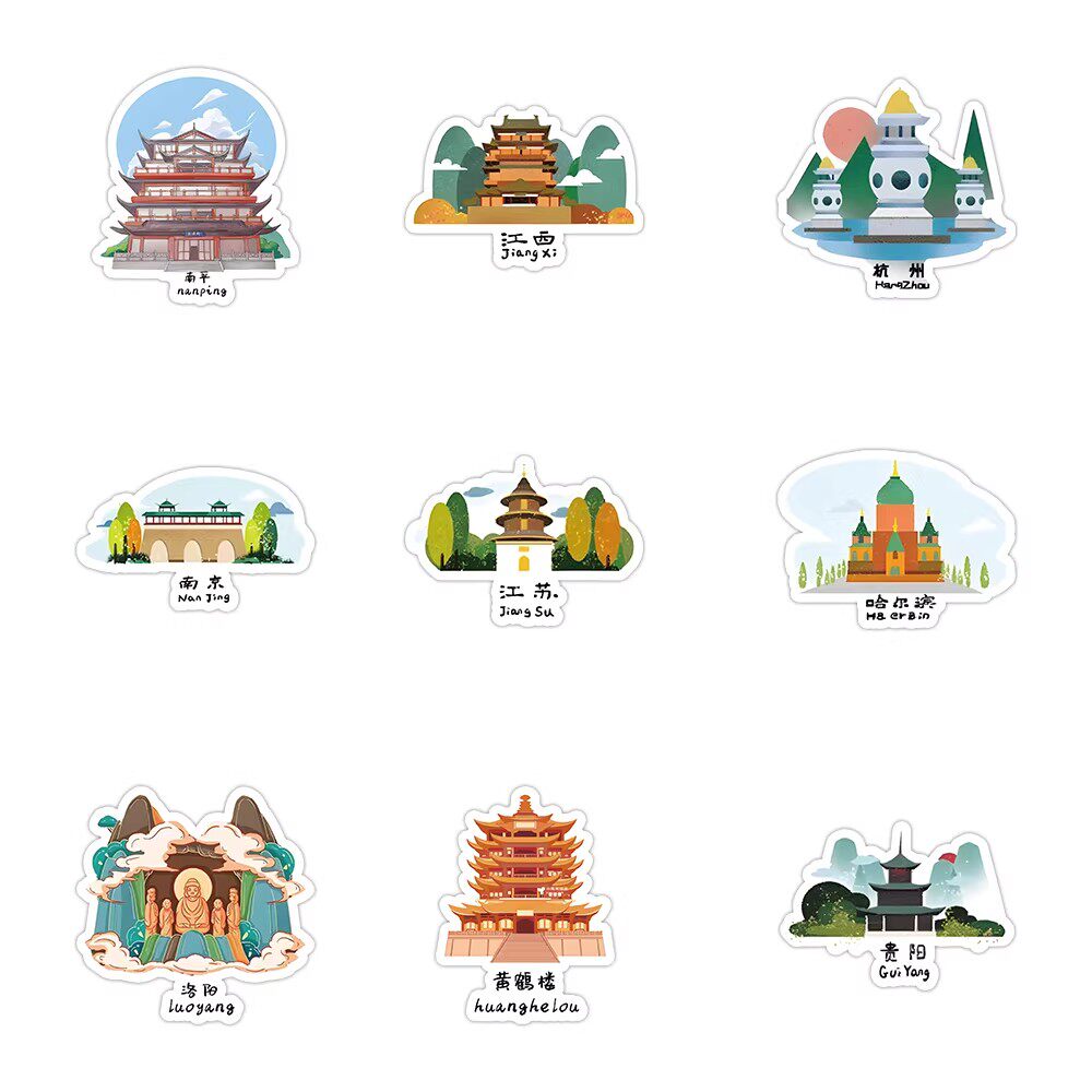 126张中国地标建筑贴纸黄鹤楼热门旅游打卡景点装饰水杯防水贴画