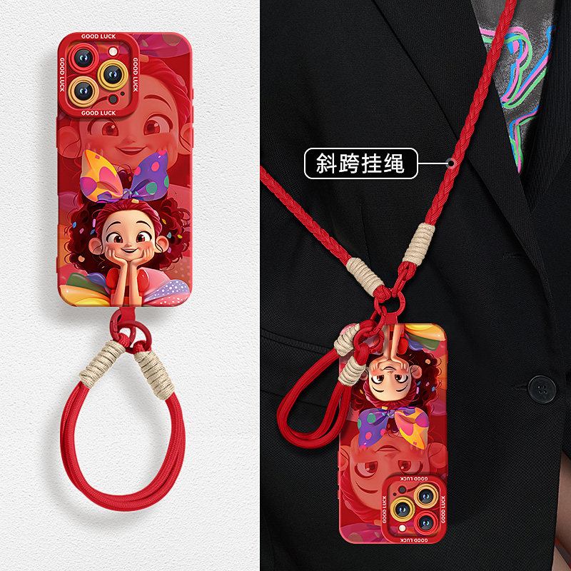 适用苹果16promax手机壳2025新款女款iphone16pro全包防摔保护套15plus高级感红色新年本命年14带挂绳蛇年