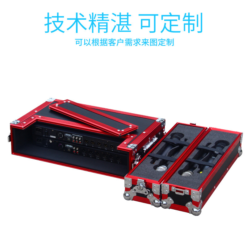 2U话筒航空箱接收机机柜3U无线收纳箱麦克风周边机箱铝合金咪箱