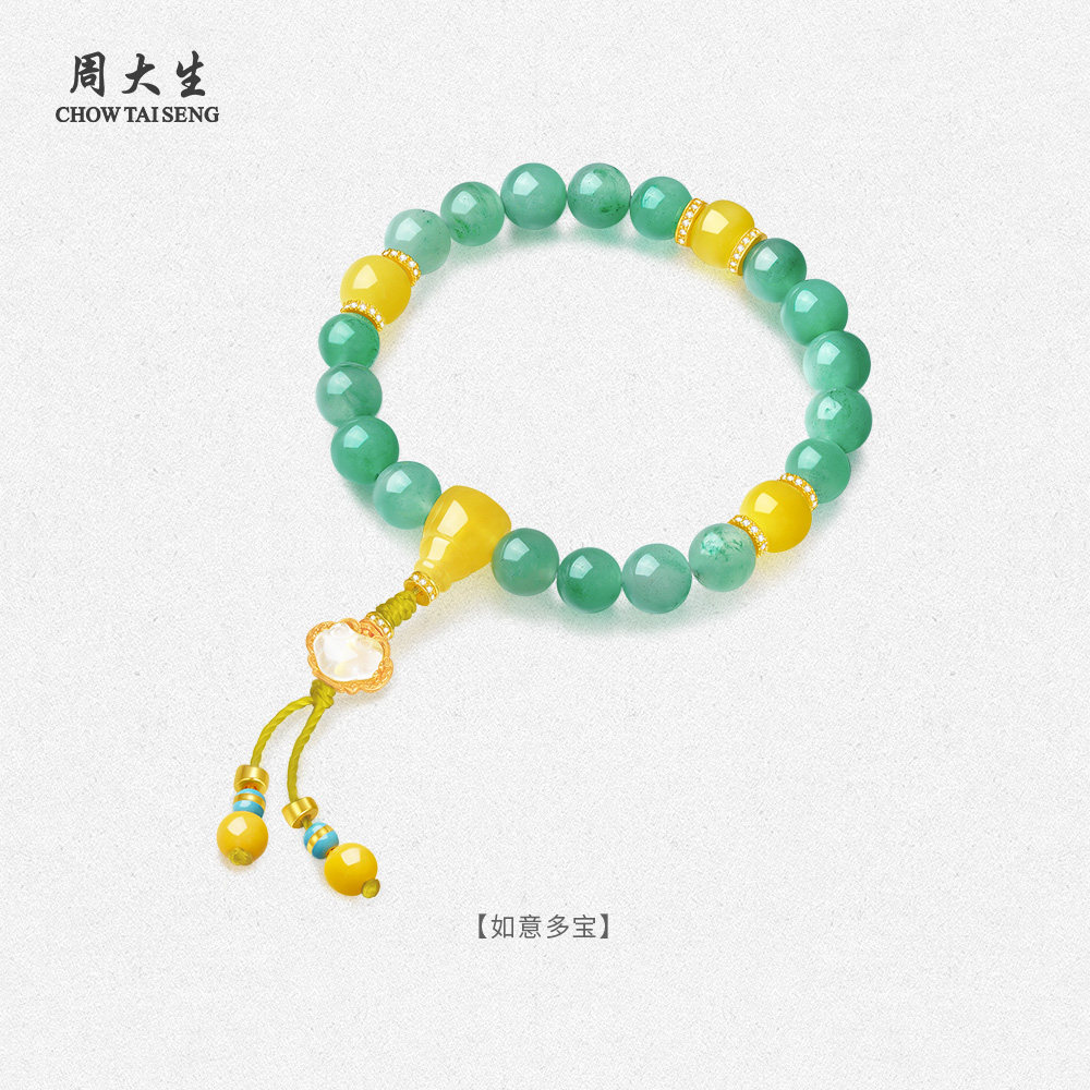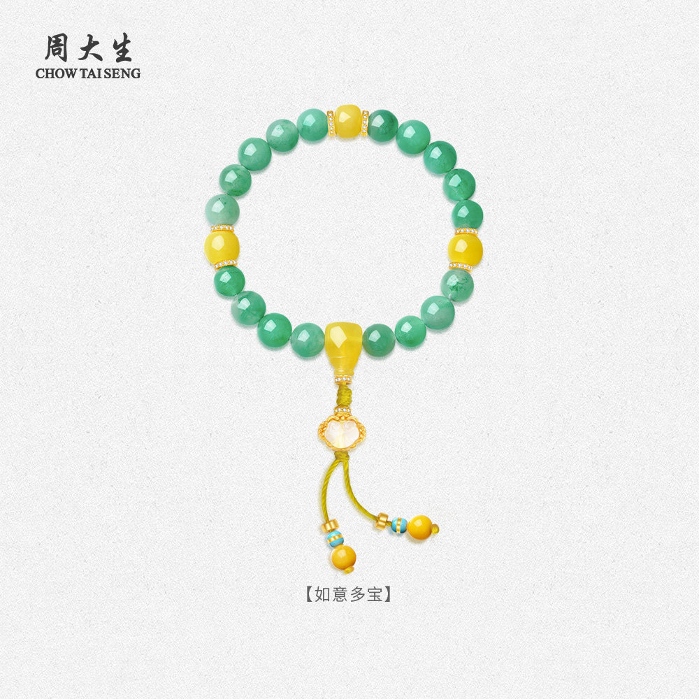 周大生十八籽非洲翠手串纯银玉石如意多宝蜜蜡手饰生日礼物送妈妈