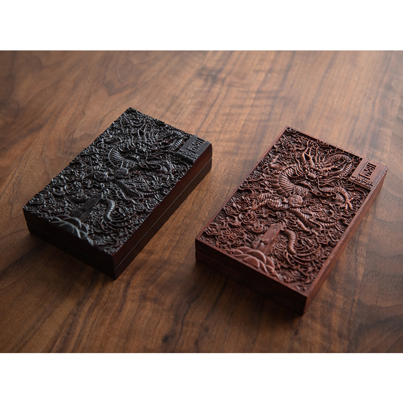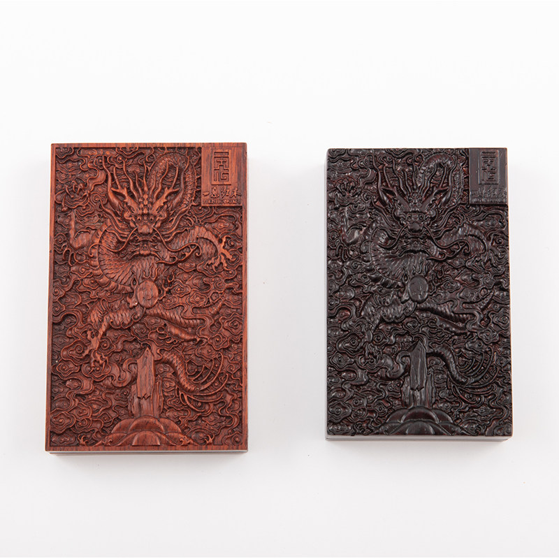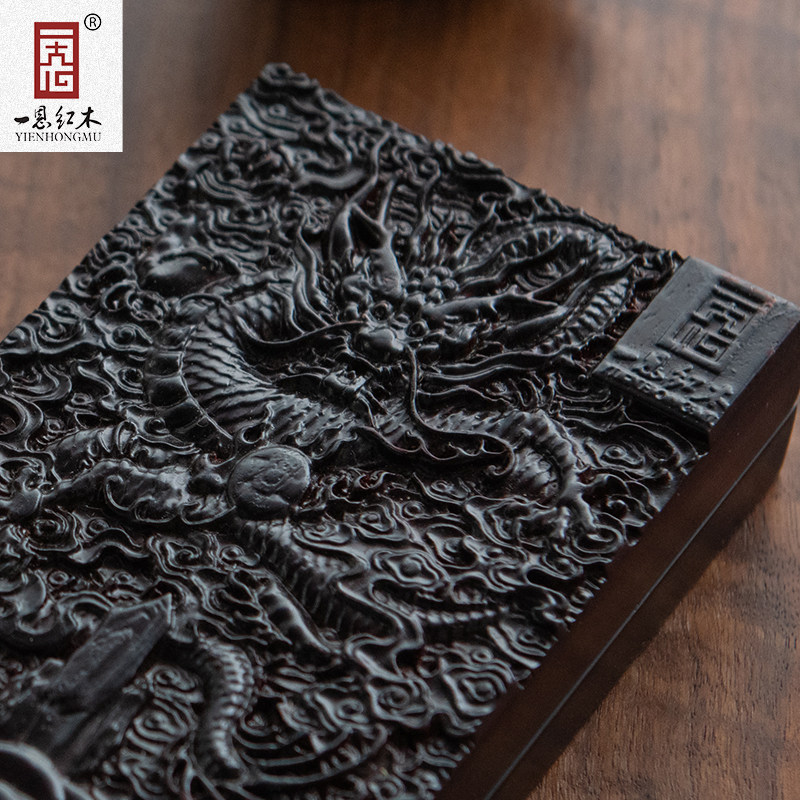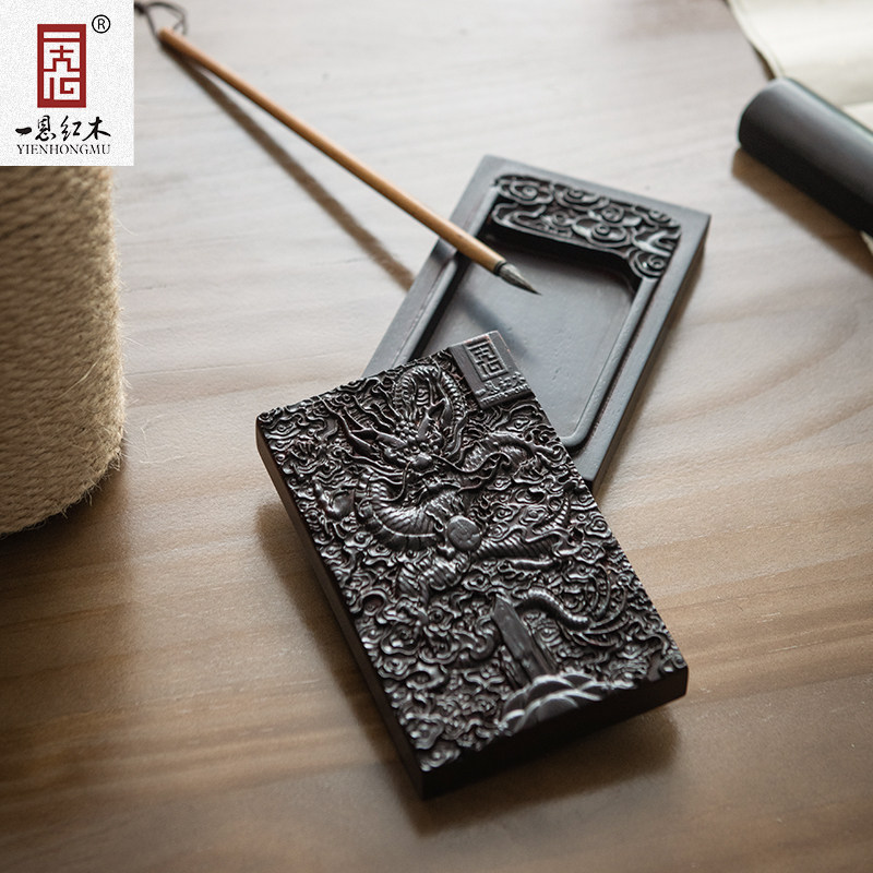 中式红木墨盒毛笔刺猬紫檀木雕红酸枝木文房四宝带盖砚台书法专用