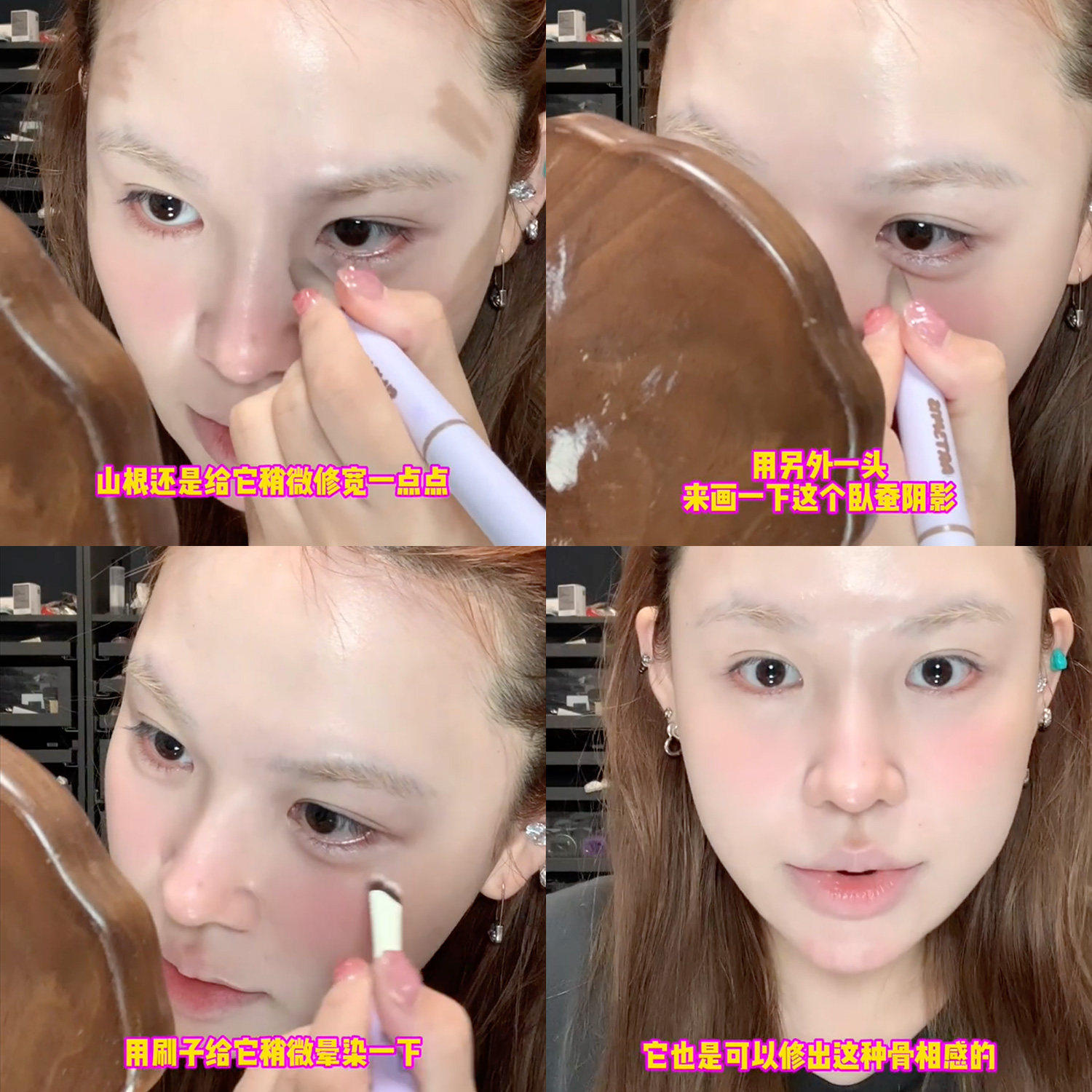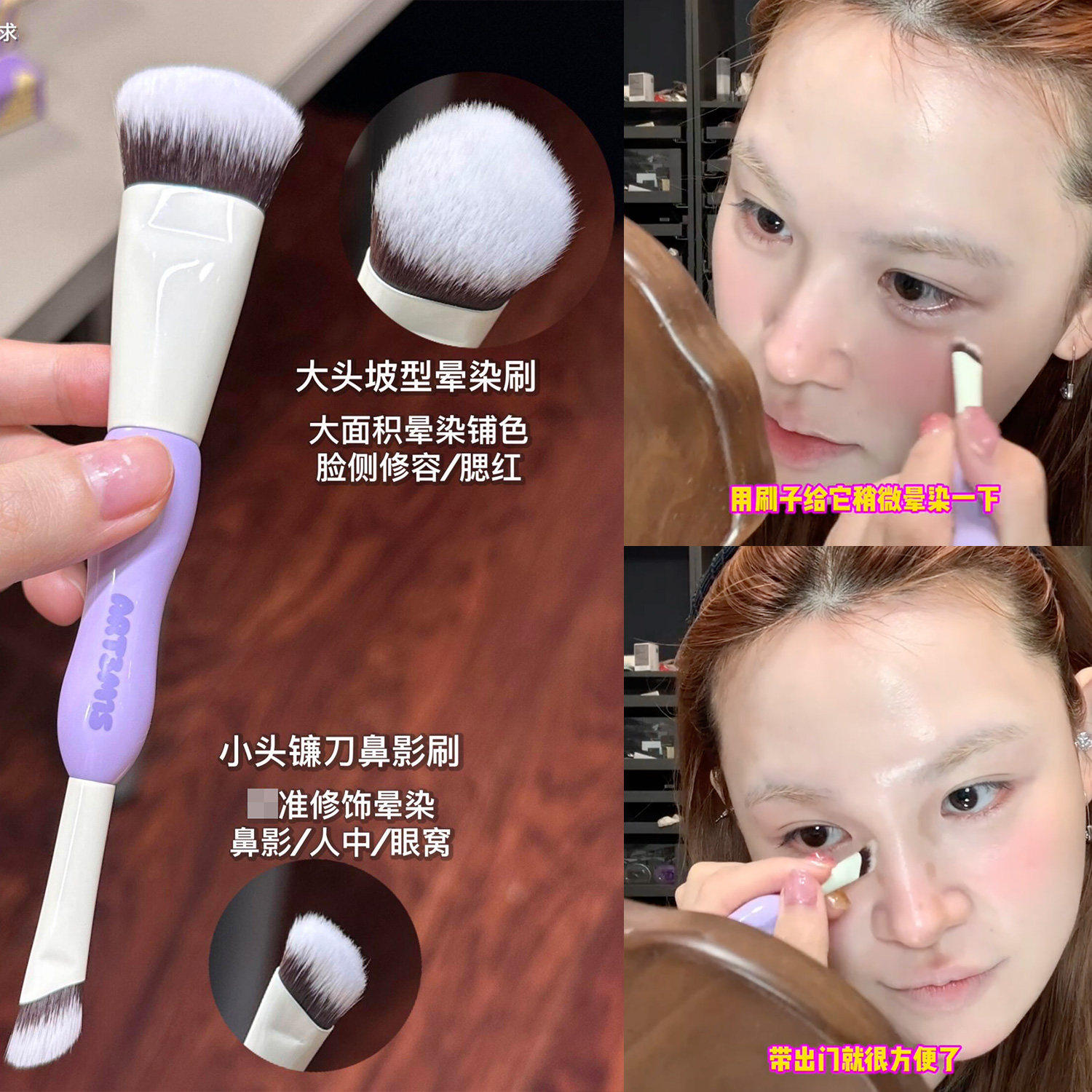 小猴子推荐!凹凸迷思双头修容笔眼影阴影鼻影刷自然立体卧蚕多用