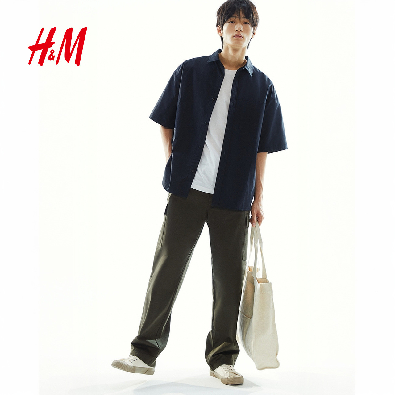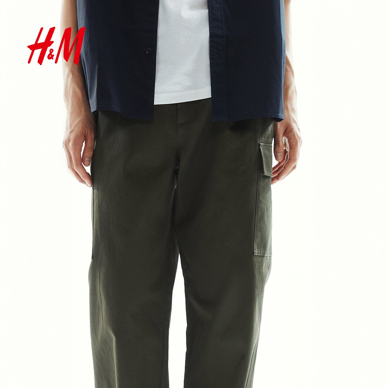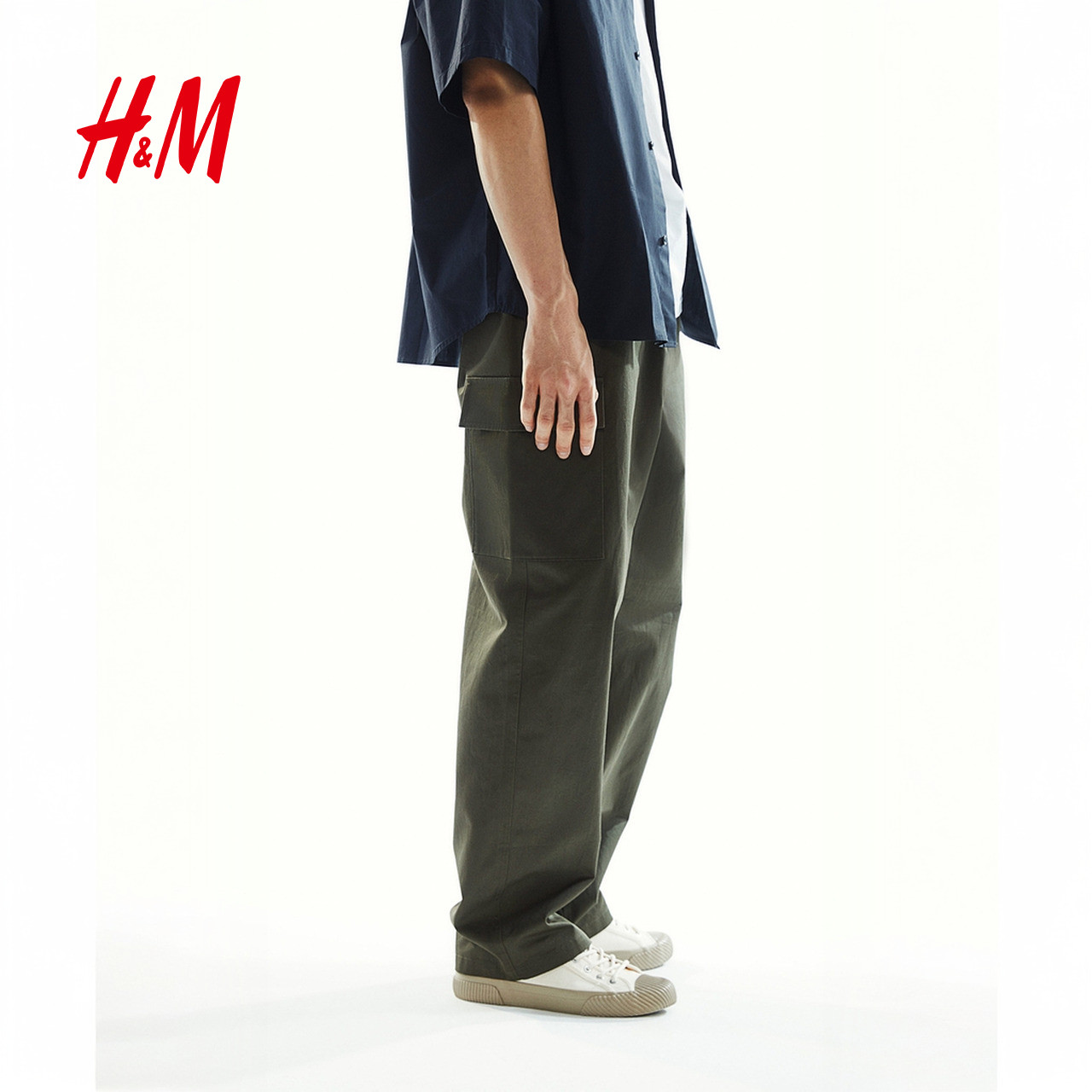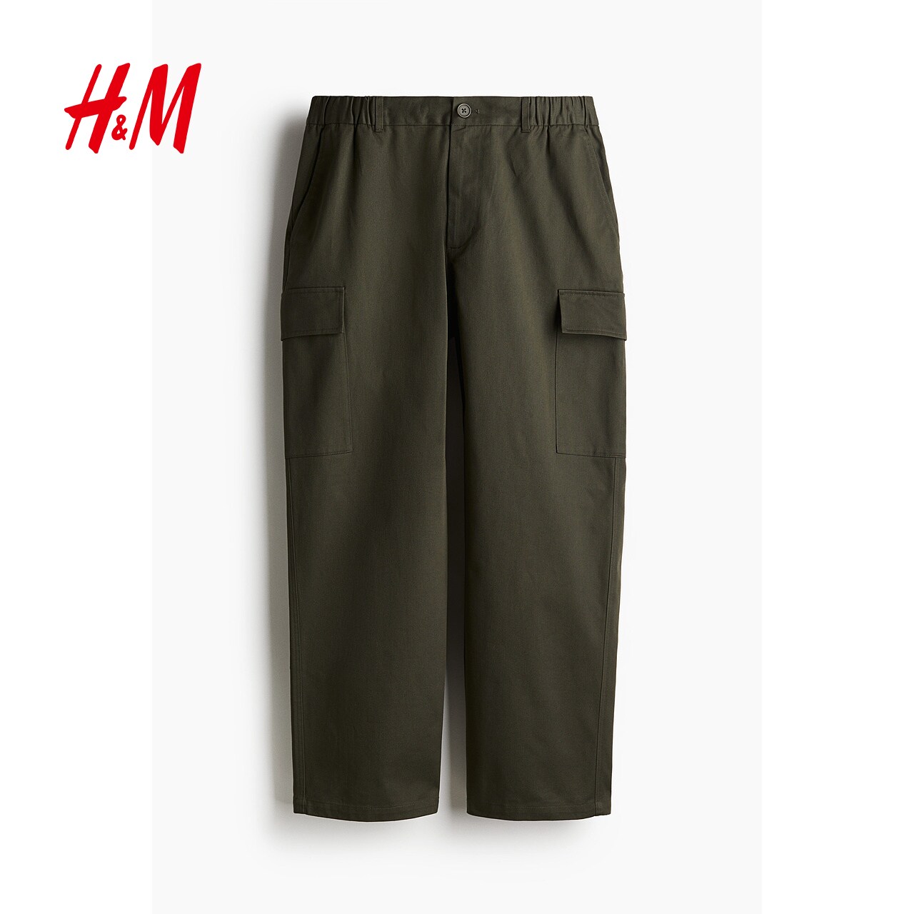 HM男装休闲裤春季宽松版斜纹布松紧腰工装裤长裤1275880