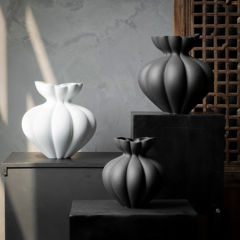 景德镇现代风陶瓷花瓶手工捏制创意南瓜花器餐厅民宿软装搭配摆件