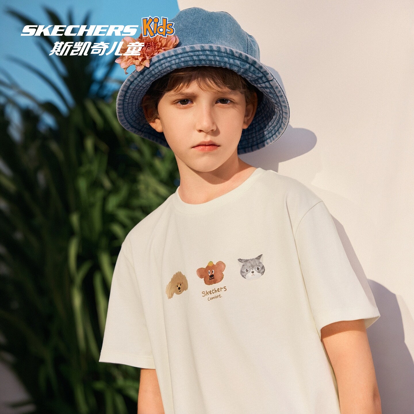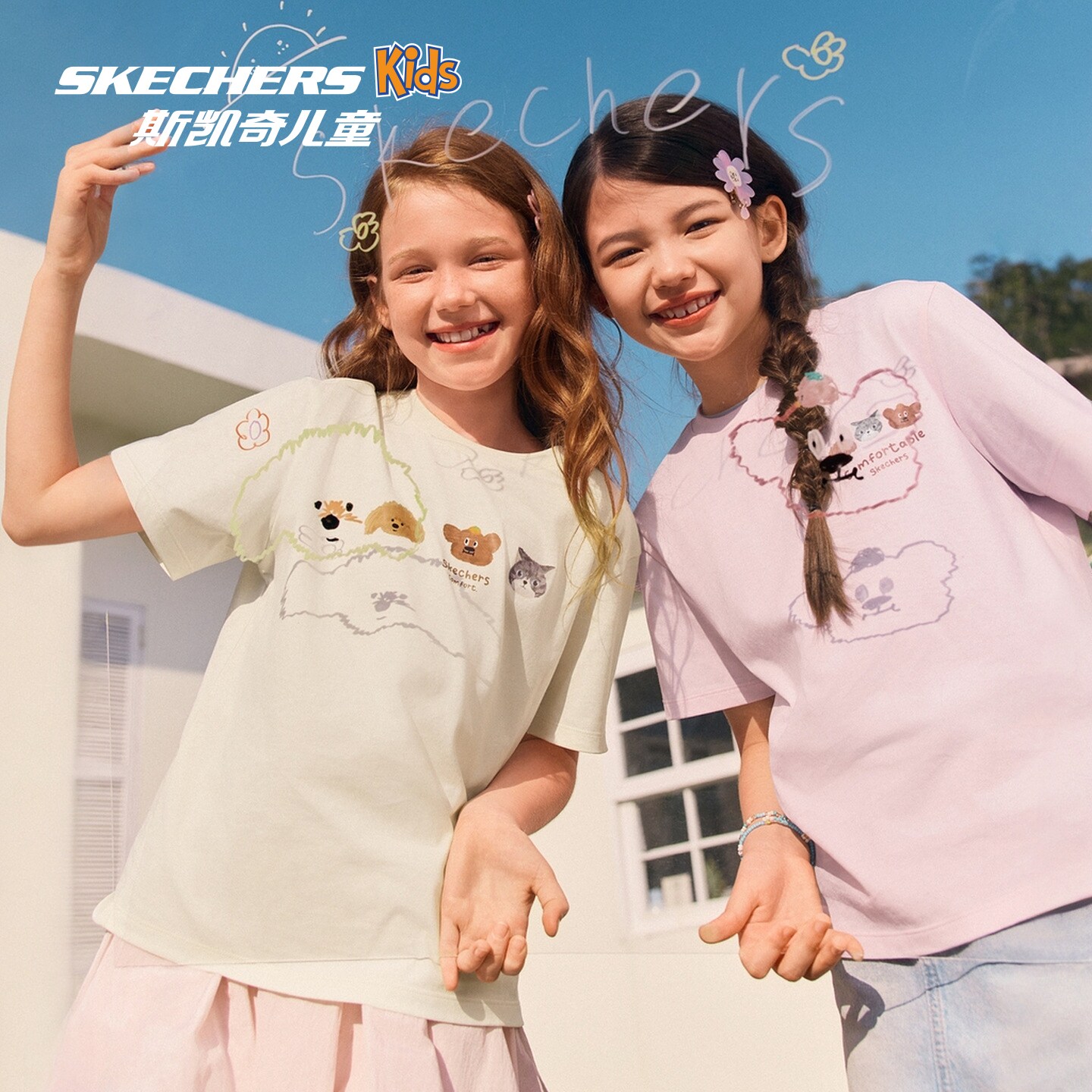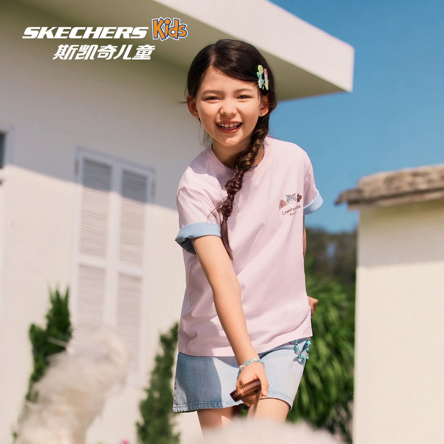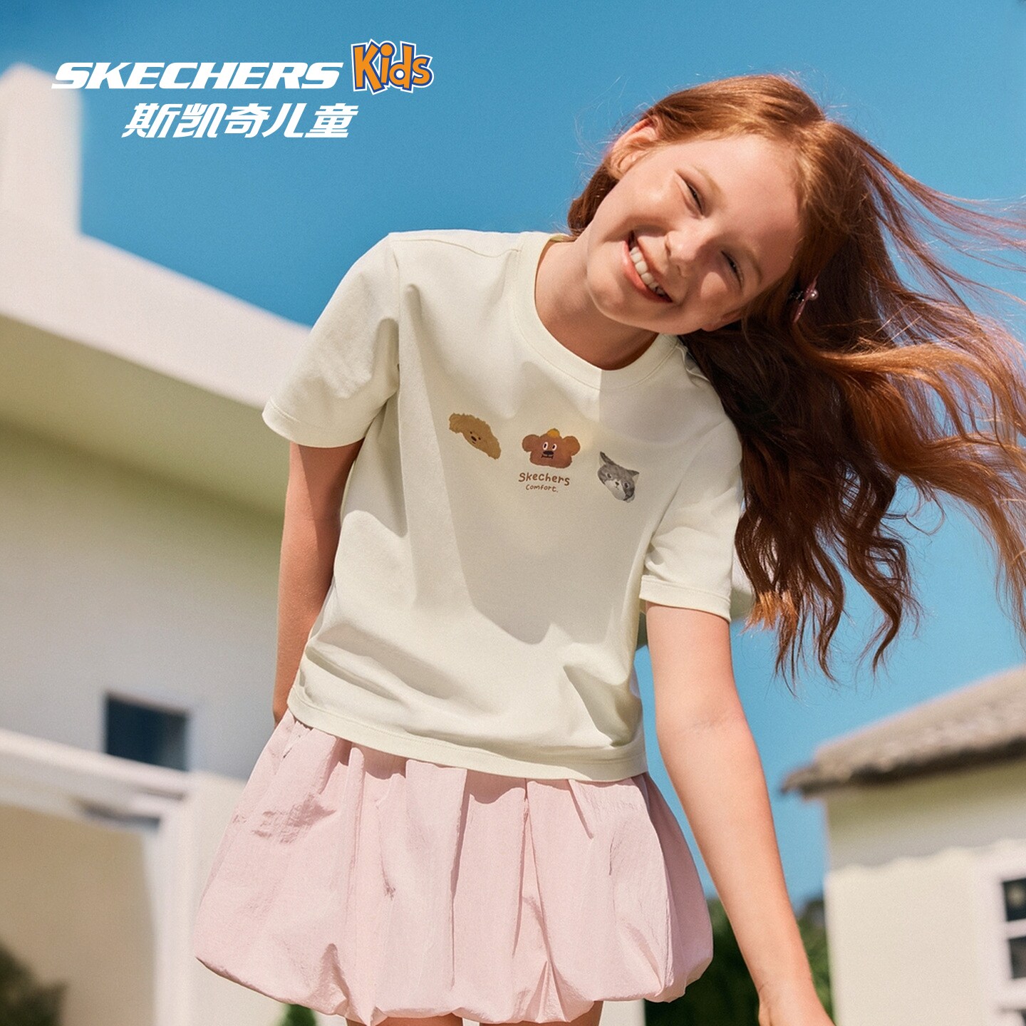 Skechers斯凯奇儿童贴贴T夏季短袖T恤亲子童装男女童舒适纯棉上衣
