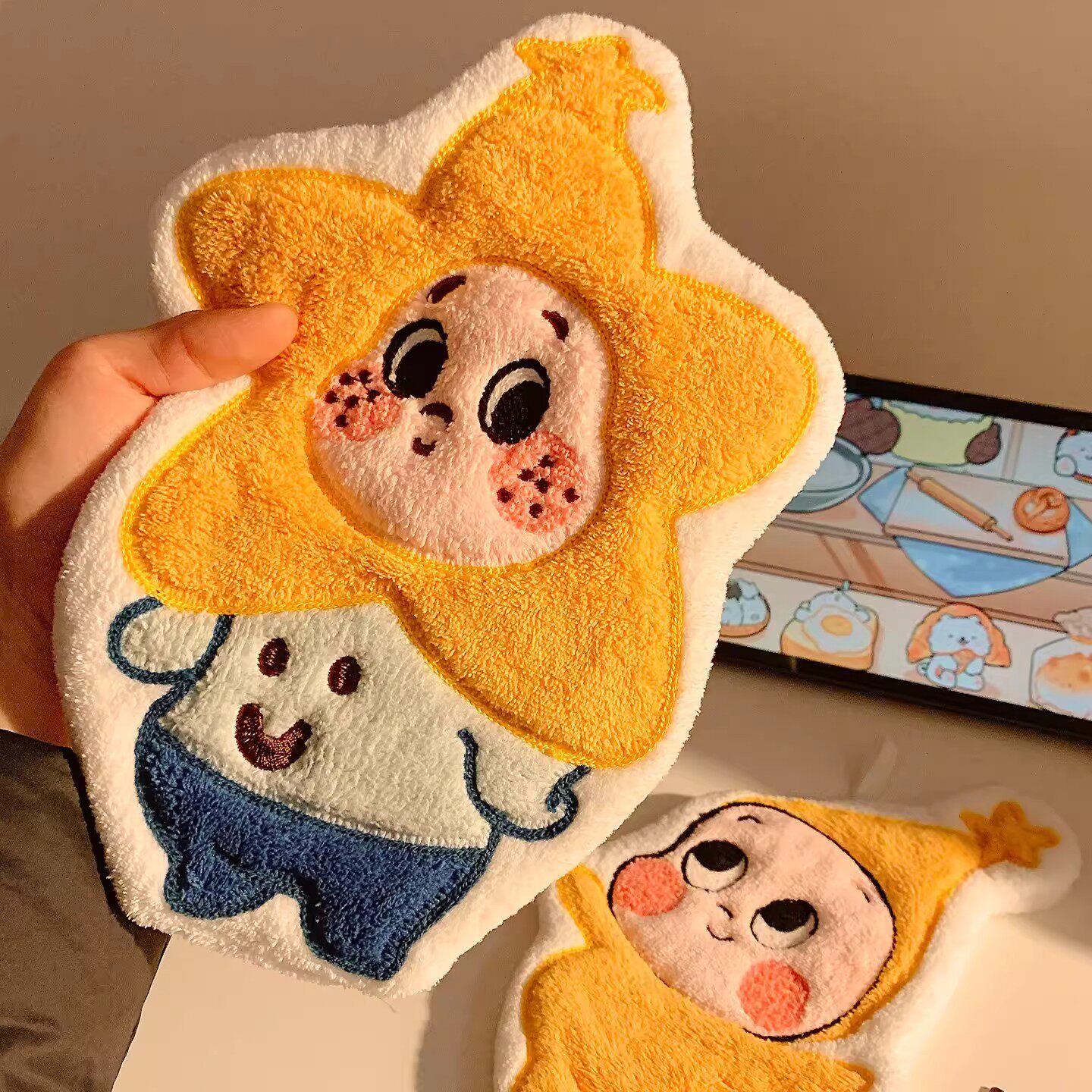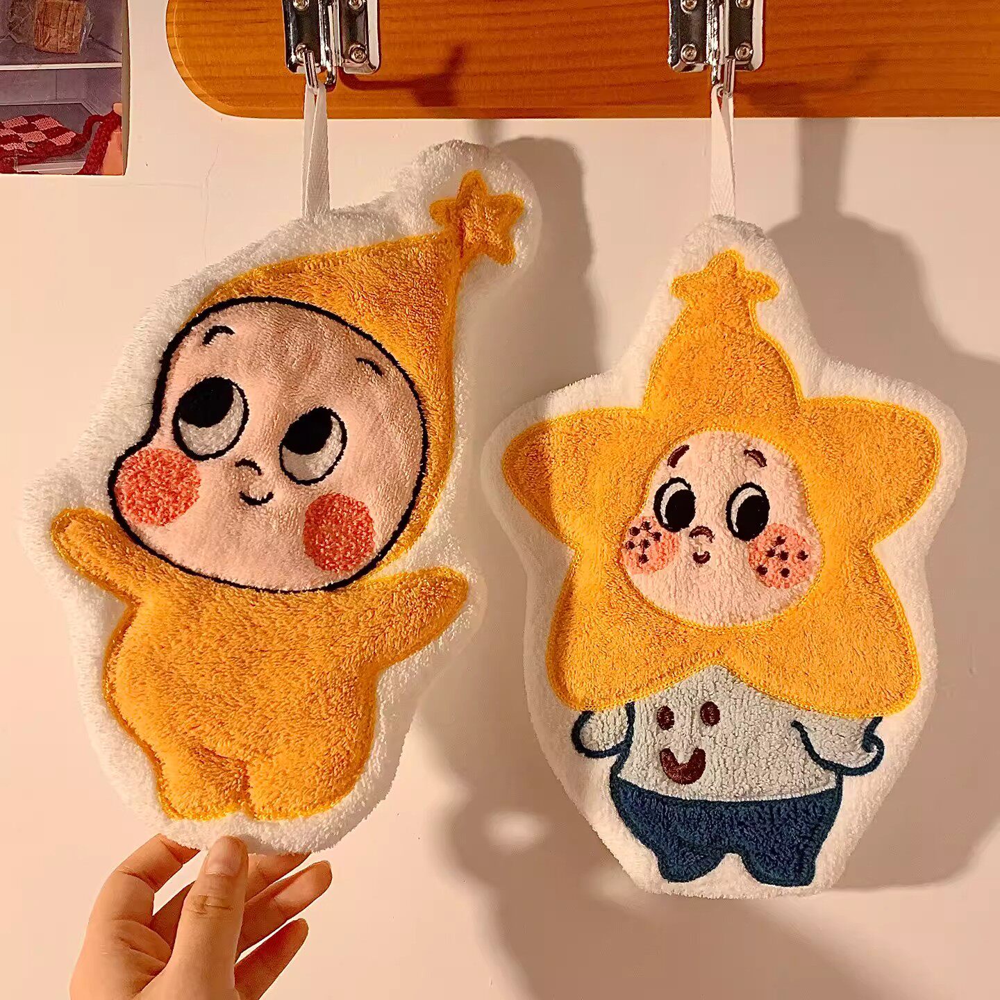 星星人擦手巾挂式可爱手帕卫生间厨房超强吸水加厚珊瑚绒抹手毛巾