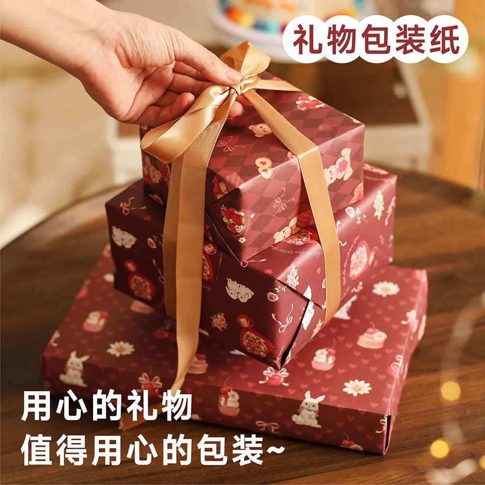 儿童生日礼物包装纸高级感包礼盒的礼物纸加丝带卡通礼品纸大尺寸复古牛皮纸大张小学生幼儿园打包纸教师节