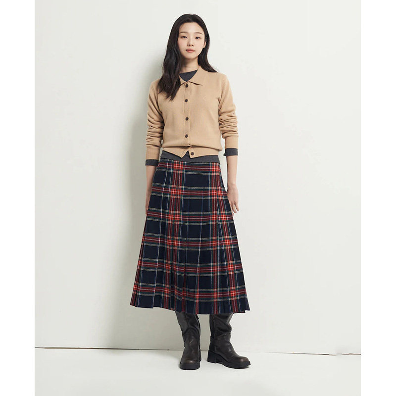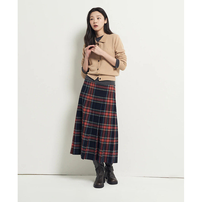 含绵羊毛BEANPOLE滨波春秋女士时尚新年红色休闲大格纹百褶半身裙