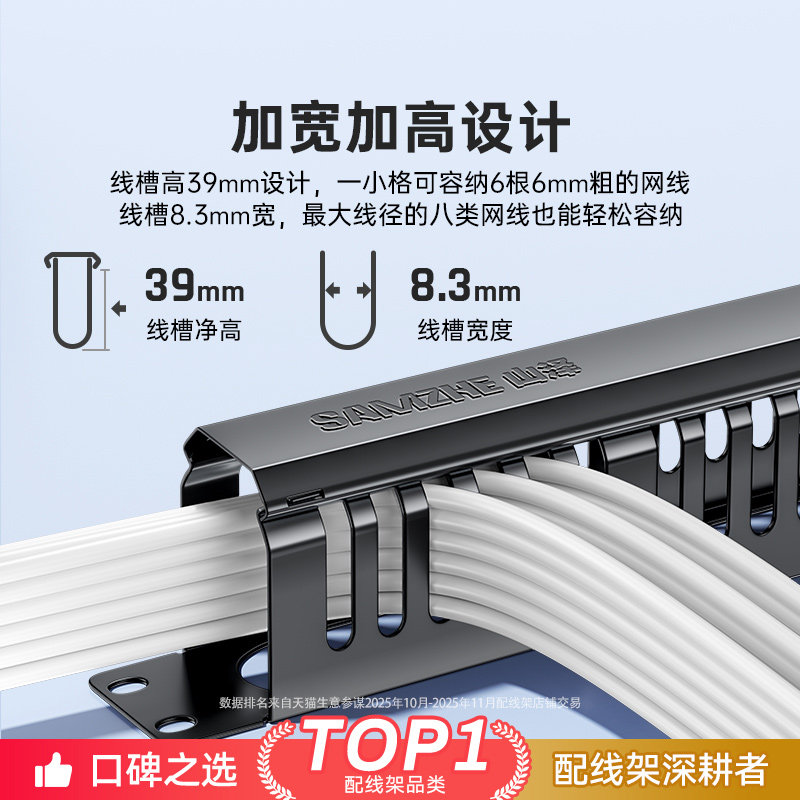 山泽网络机柜理线架24口48口配线架1u加厚电话网线理线器槽光纤跳线管理器工程网络服务器电话线缆整理19英寸