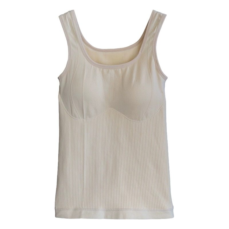 保暖吊带背心女内搭秋冬新款加绒加厚带胸垫文胸一体白色打底上衣