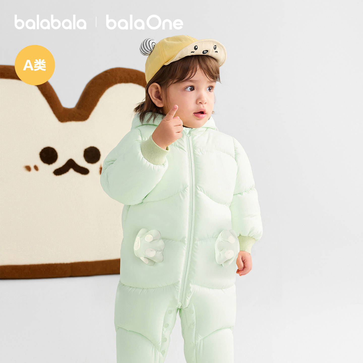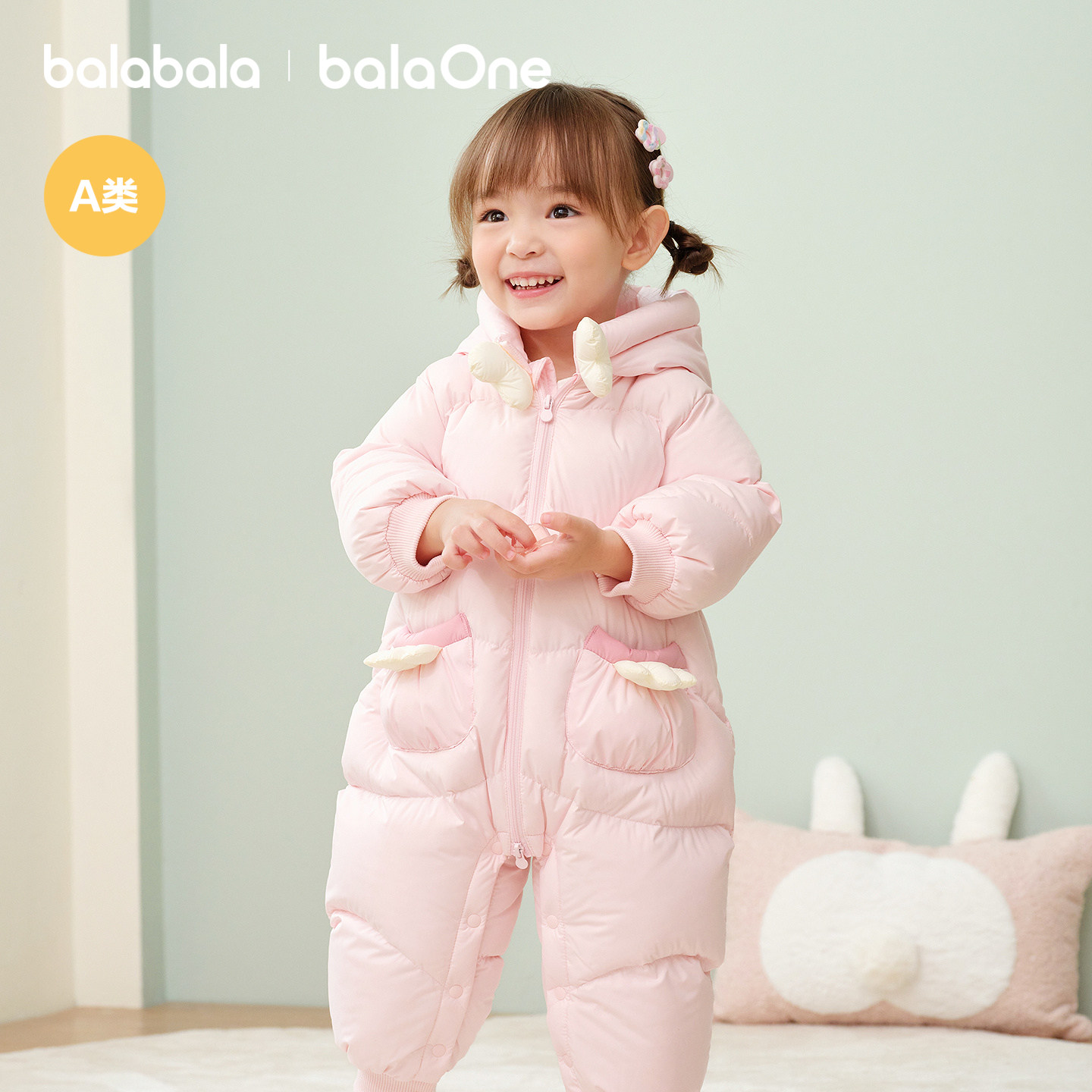 巴拉巴拉balaOne婴儿羽绒服连体衣2025新款宝宝冬装哈衣爬服保暖