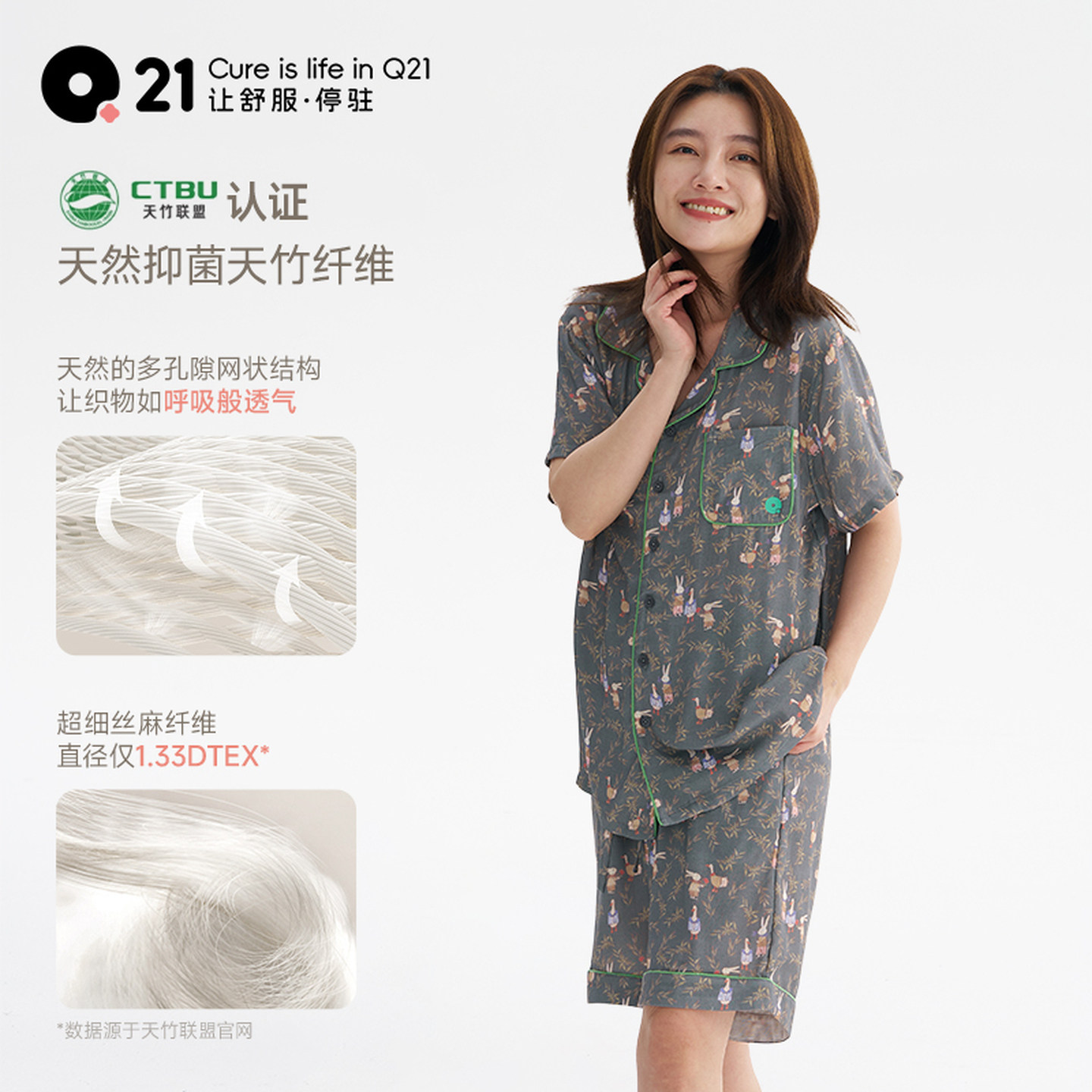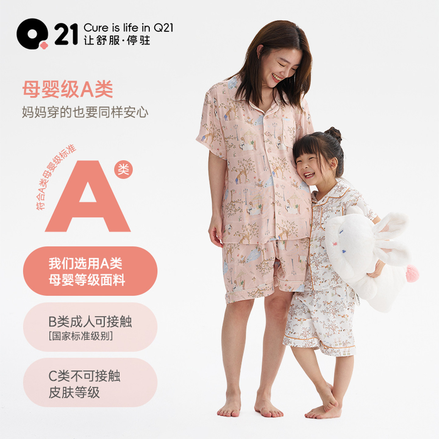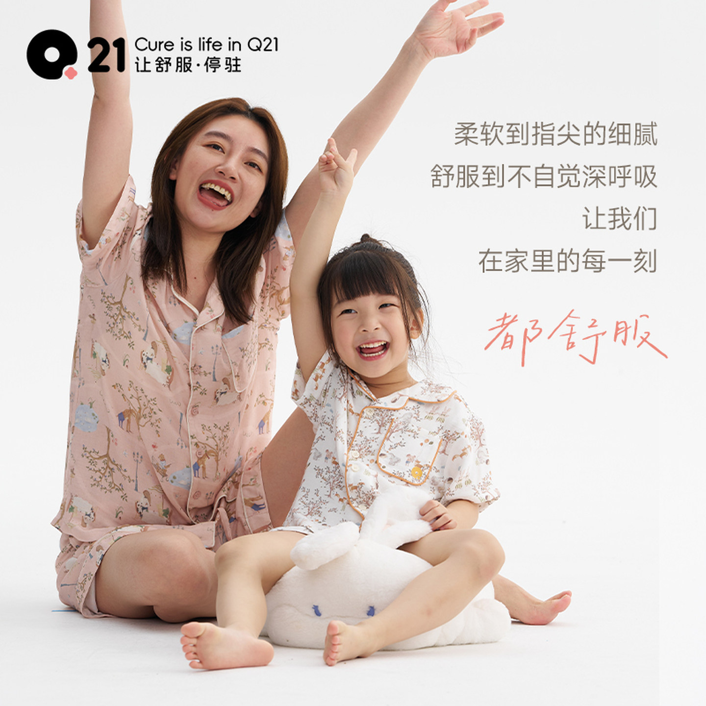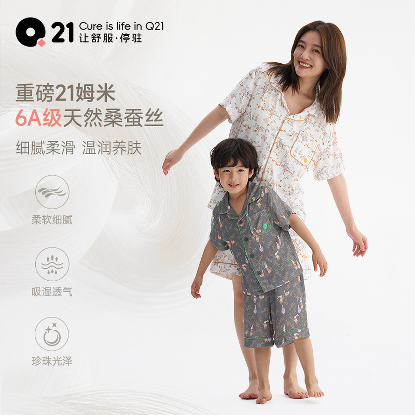 Q21浣纱系列儿童家居服亲子短袖睡衣套装蚕丝纱布儿童空调睡衣