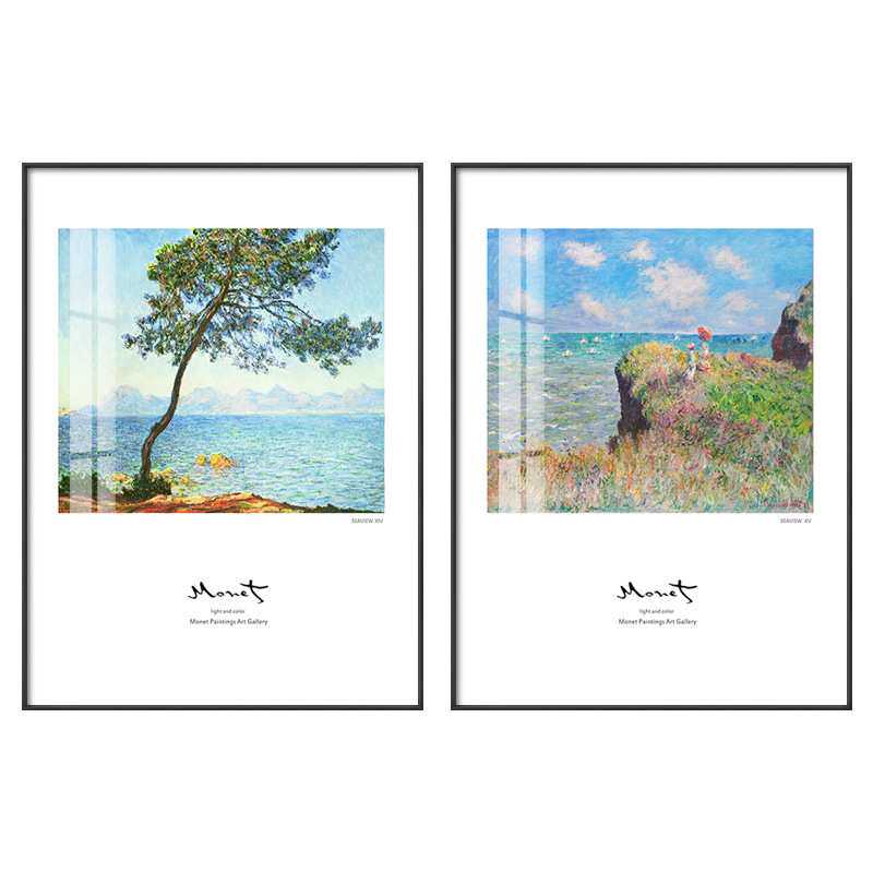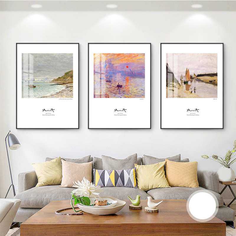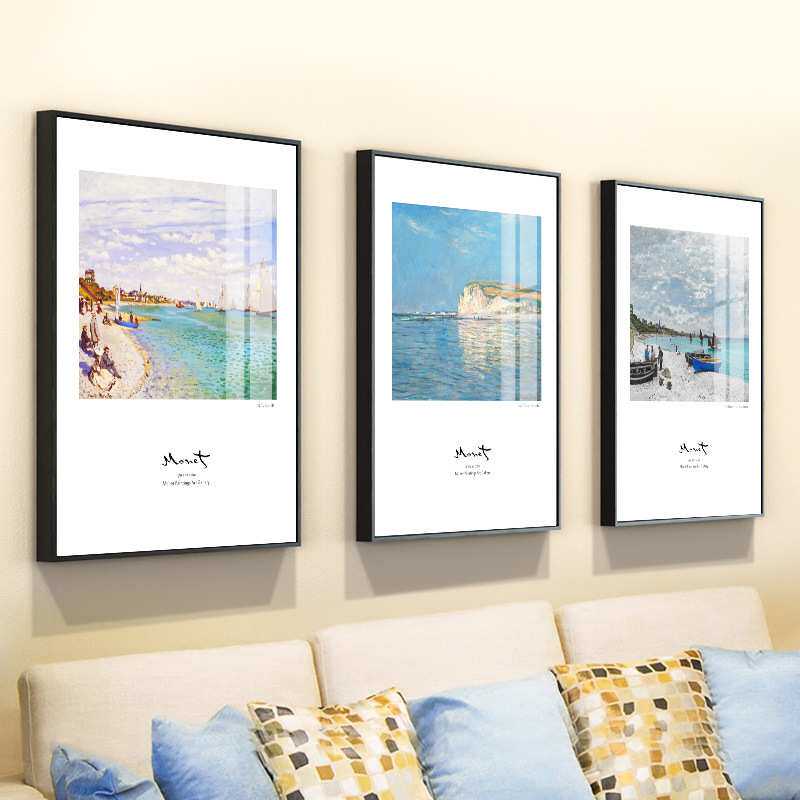 莫奈作品客厅装饰画沙发后面的玄关现代卧室饭厅三联墙画日出印象