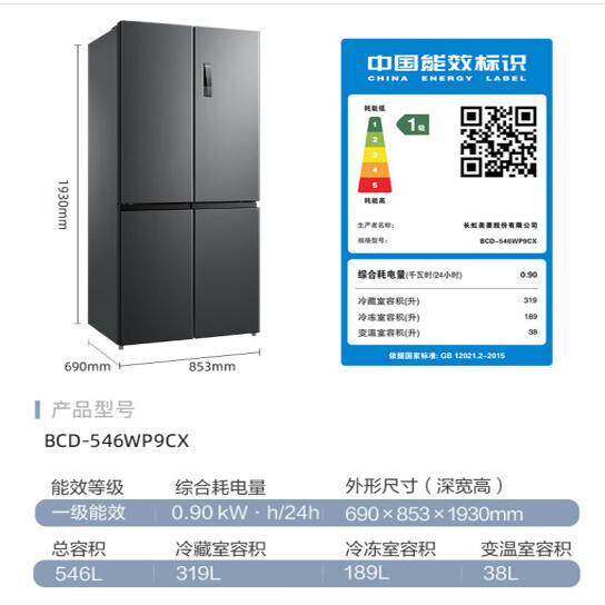 MeiLing/美菱 BCD-536WP9B/521WP9B变频无霜十字对开门冰箱一级