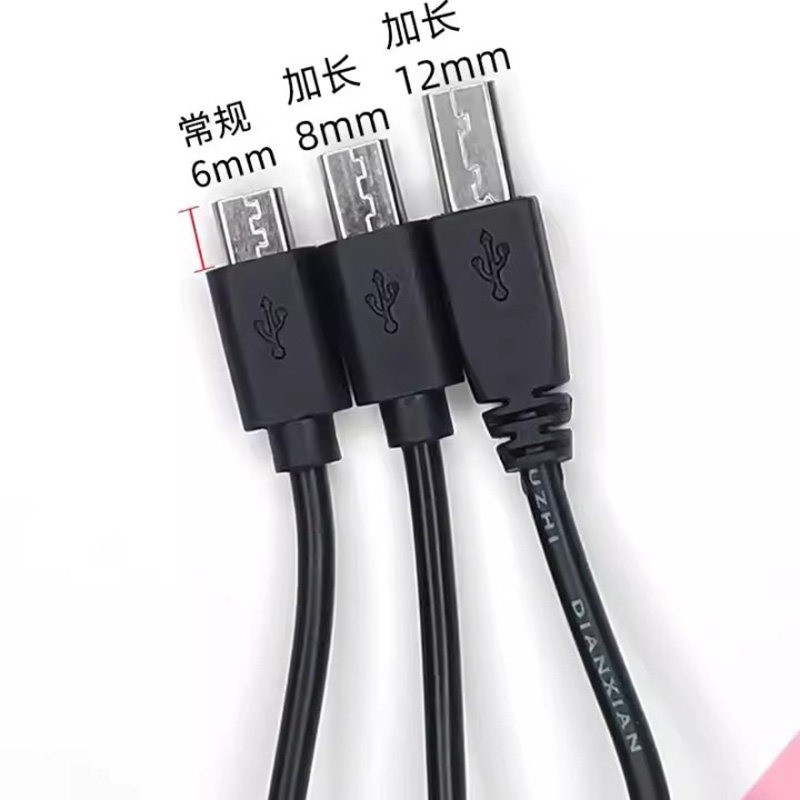 老人机安卓接口加长特长头12mm数据线黑白色V8microUSB手机充电数据线8mm