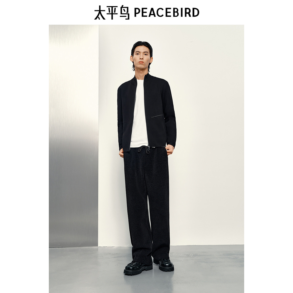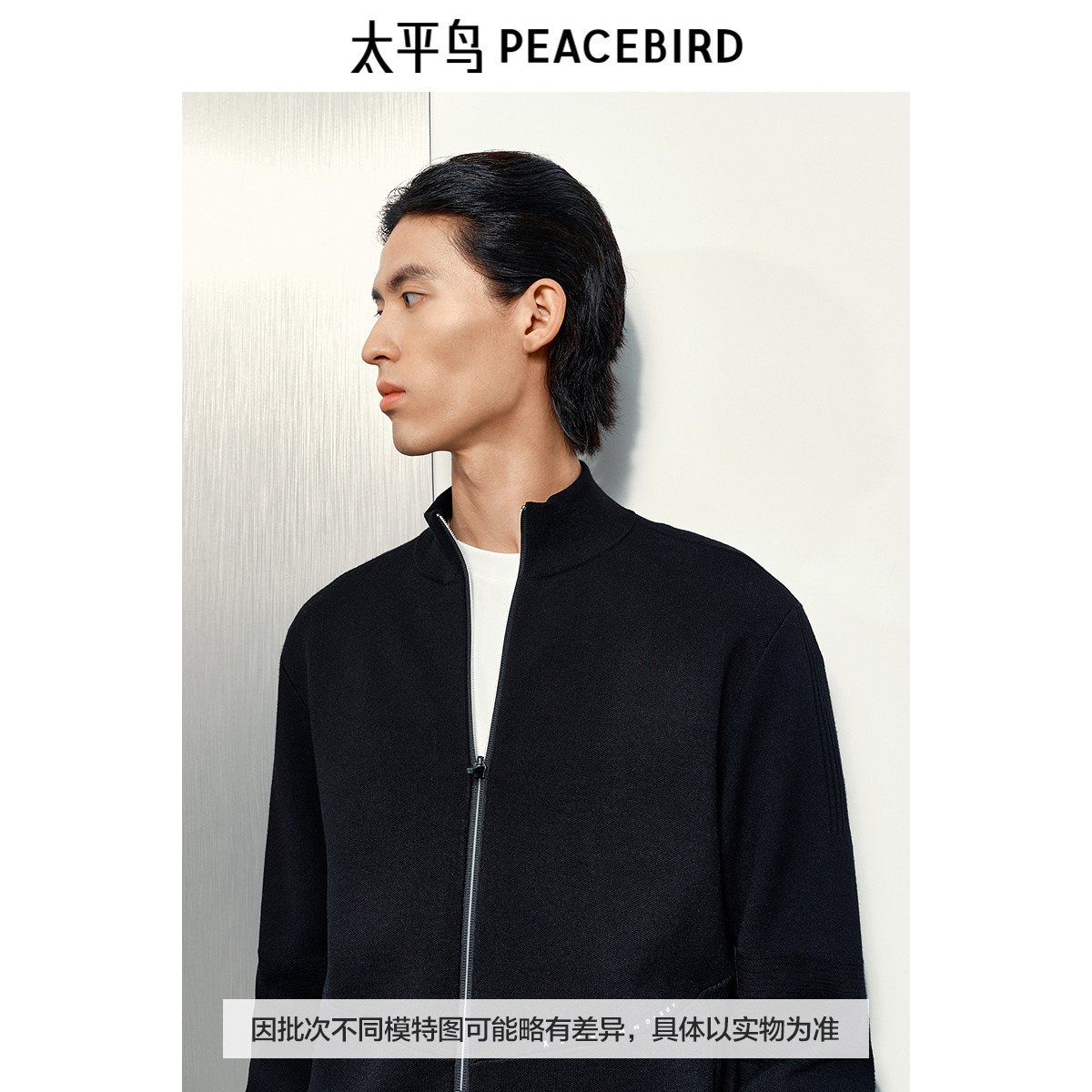 太平鸟男装 休闲毛衣抗静电拉链开衫毛衣秋冬季纯色休闲上衣男