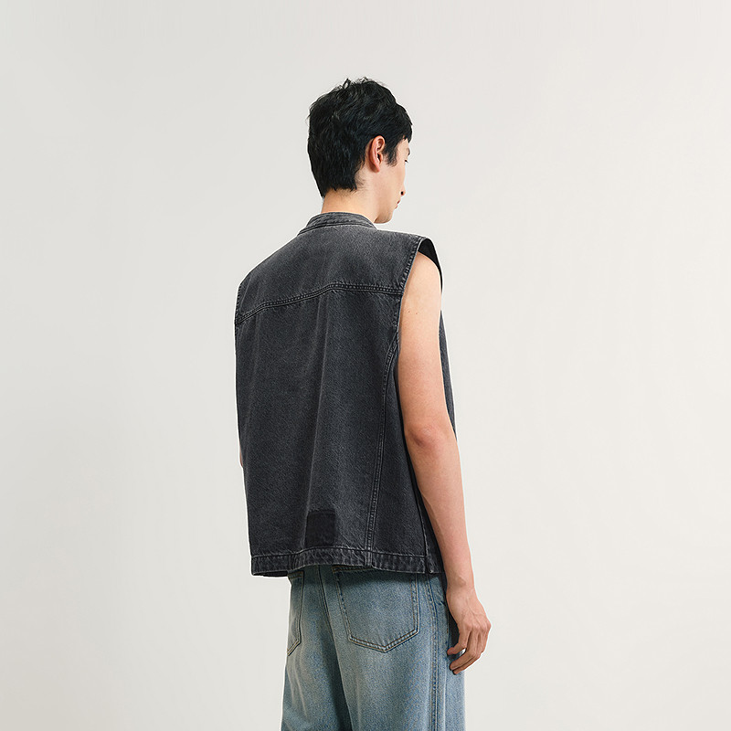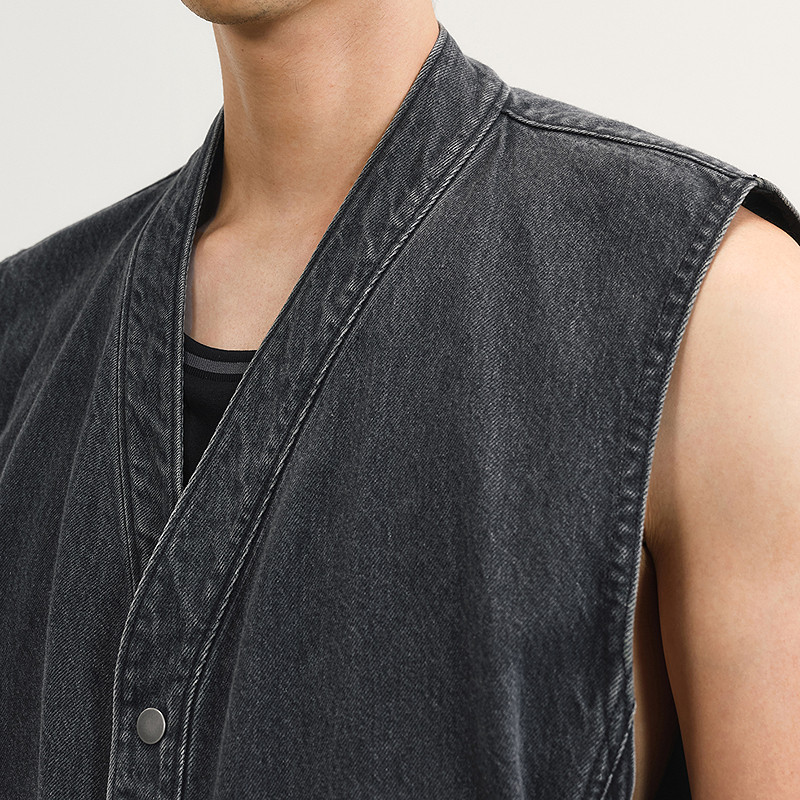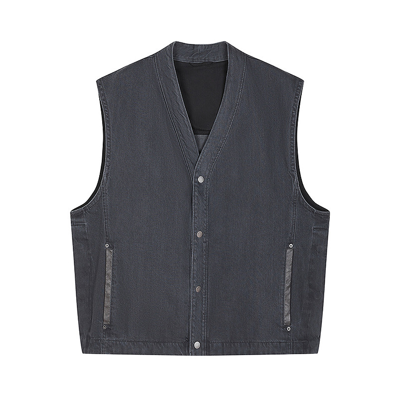 速写男装春夏新款男士马甲黑色牛仔马甲V领工装感复古时尚潮