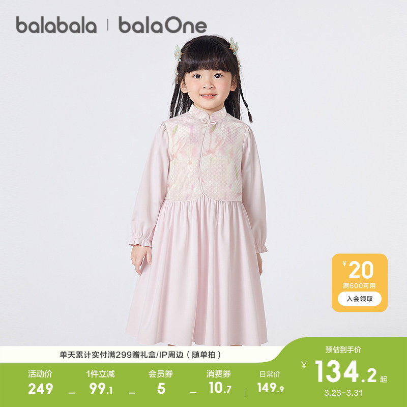 【balaOne】巴拉巴拉童装女童连衣裙2025新款春装网纱裙甜美洋气