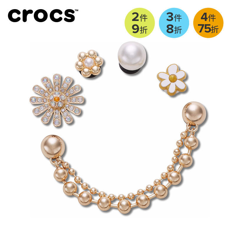 Crocs卡骆驰配饰智必星洞洞鞋花 时尚金色五件套