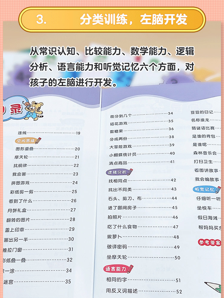 爱德少儿左右脑开发2-6岁儿童益智启蒙逻辑思维训练专注力游戏书学前幼儿园早教认知亲子阅读书籍学龄前入学准备图书左脑