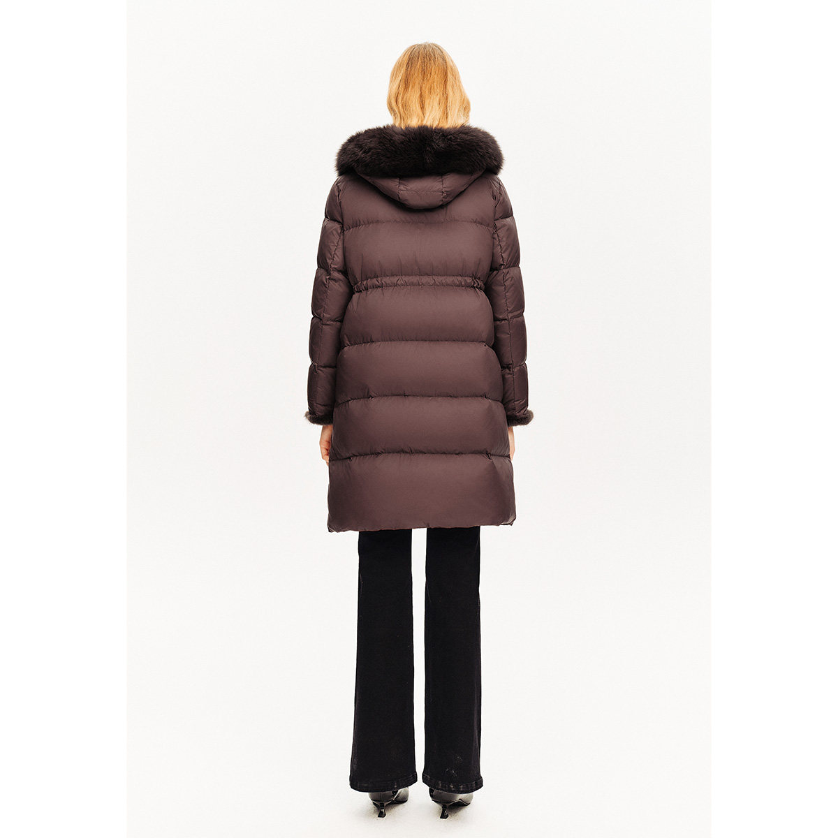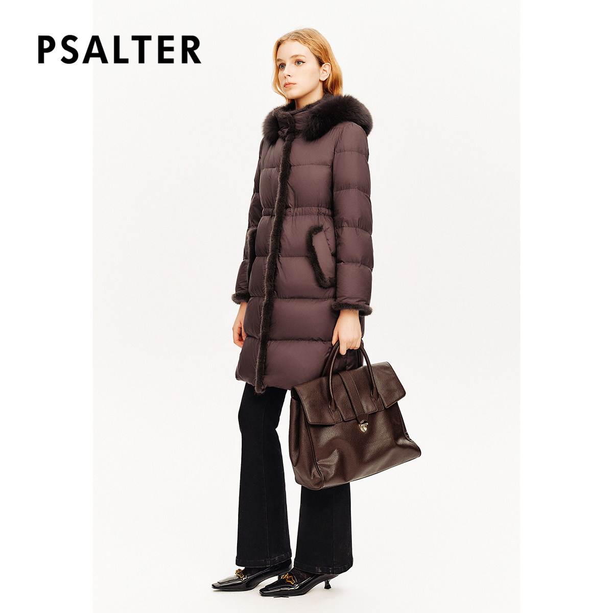 诗篇专选狐狸毛领水貂毛条拼接收腰显瘦中长款羽绒服秋冬