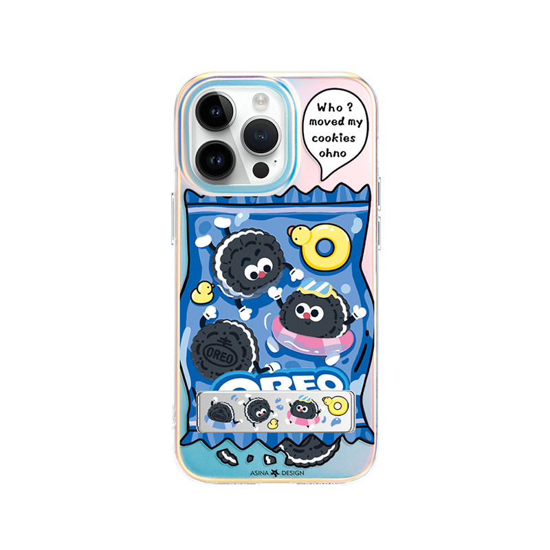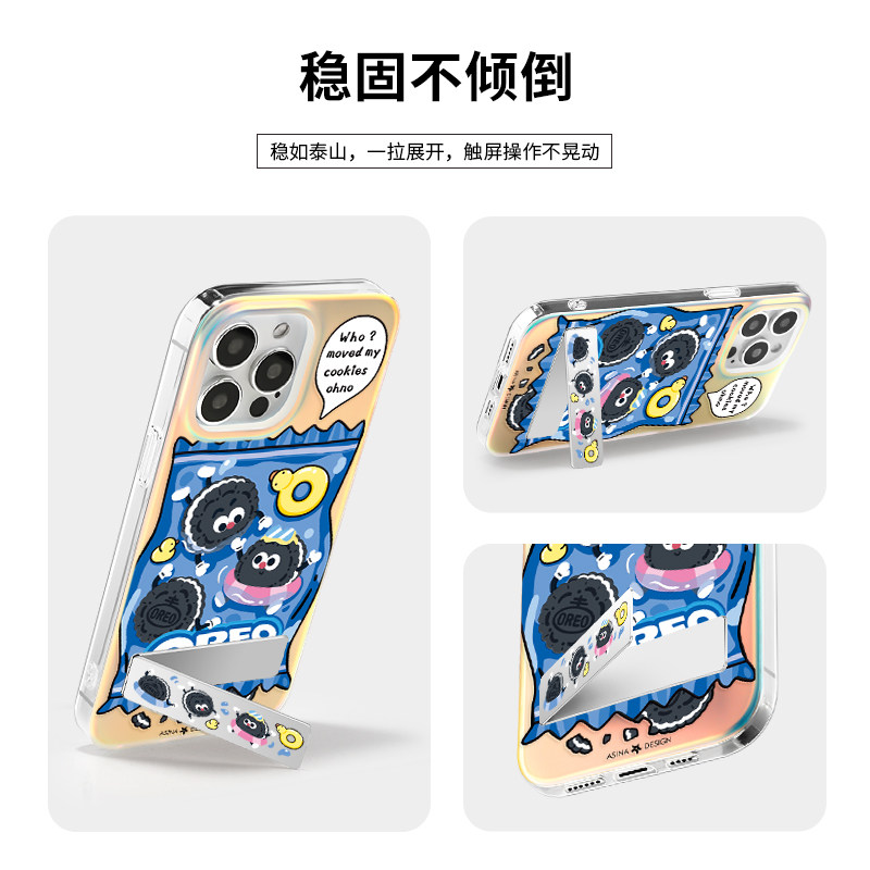 快乐奥利奥适用iPhone15Promax手机壳隐藏式支架苹果13保护套网红折叠全包防摔女ip14Pro新款可爱一体高级感