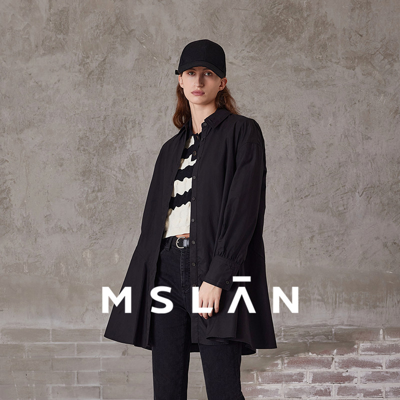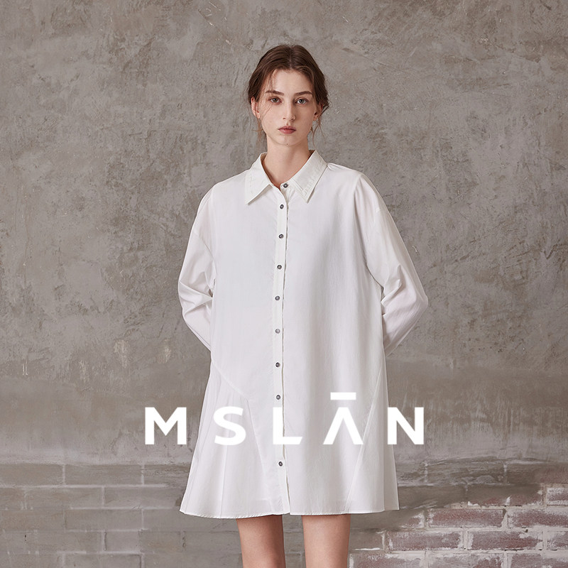 天丝裙/MSLAN26早春简约通勤落肩衬衫气质莱赛尔长袖连衣裙