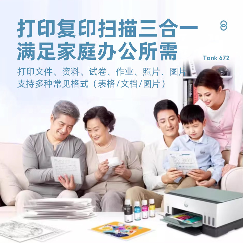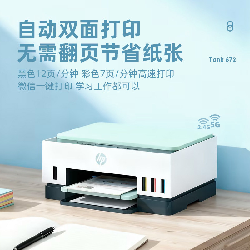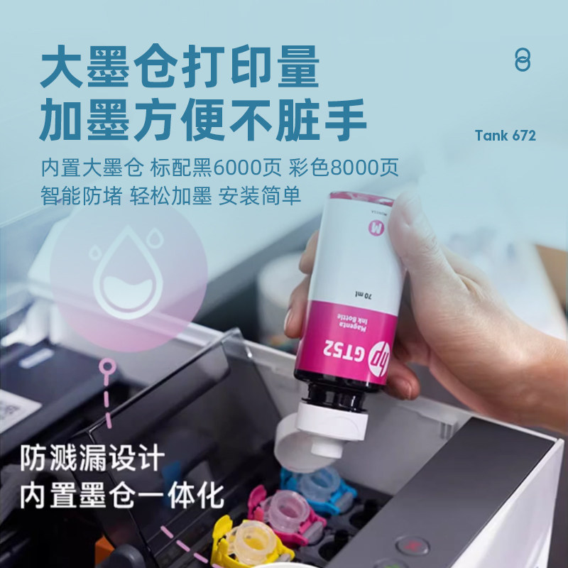 hp惠普Tank672自动双面打印机政府补贴家用小型彩色照片多功能墨仓式复印扫描一体机无线可连接手机家庭作业