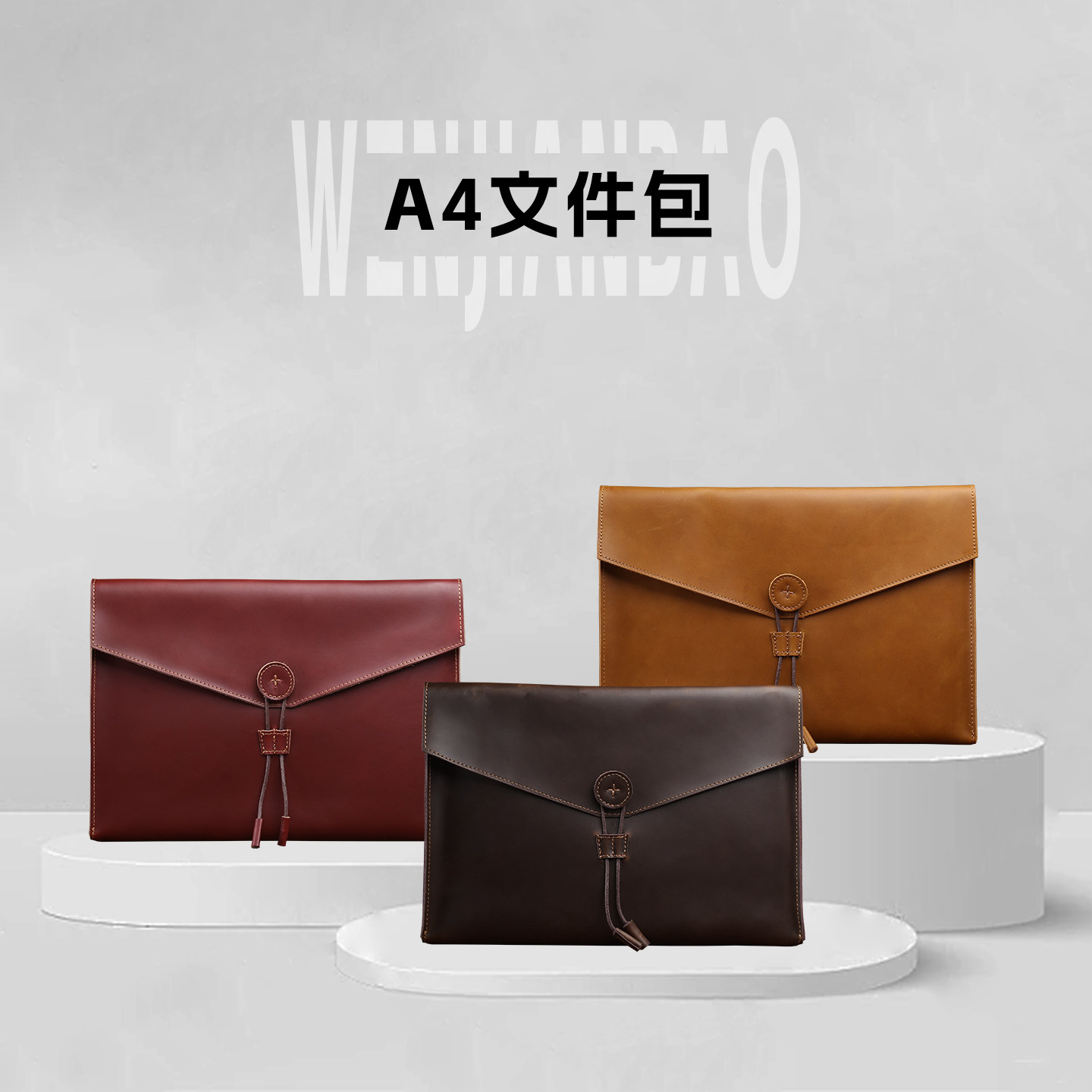 定制文件袋真皮a4文件收纳包大容量皮质商务公文包高级感手拿包