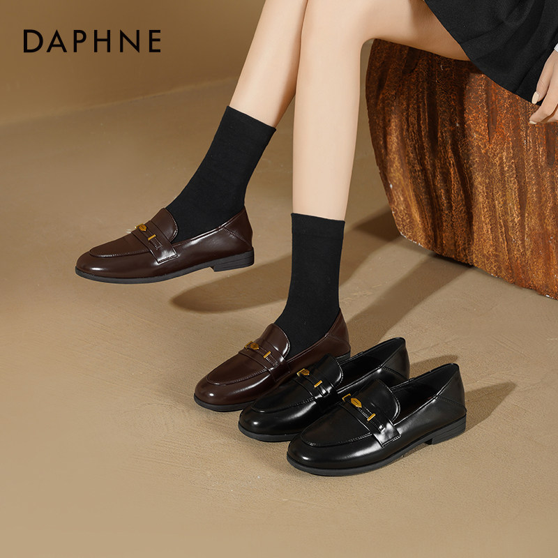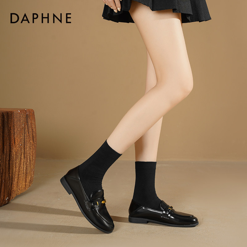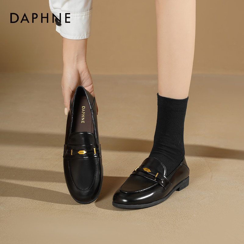 达芙妮黑色乐福鞋女2026新款春季英伦通勤小皮鞋一脚蹬平底单鞋子