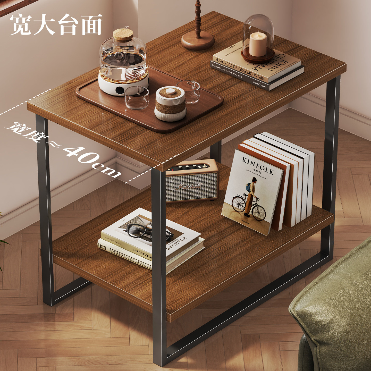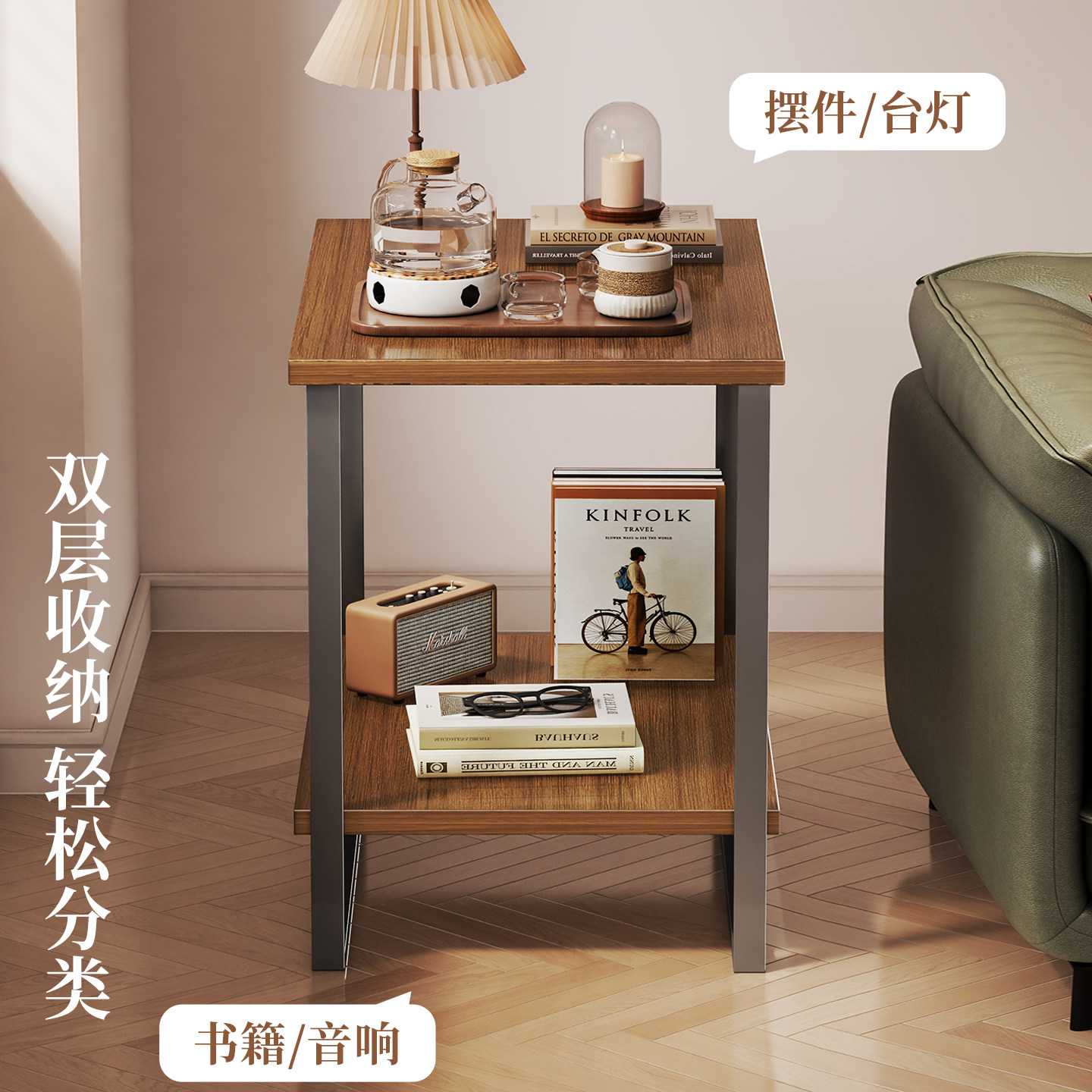 沙发边几置物架客厅茶桌收纳柜小户型储物柜落地双层台灯摆放支架