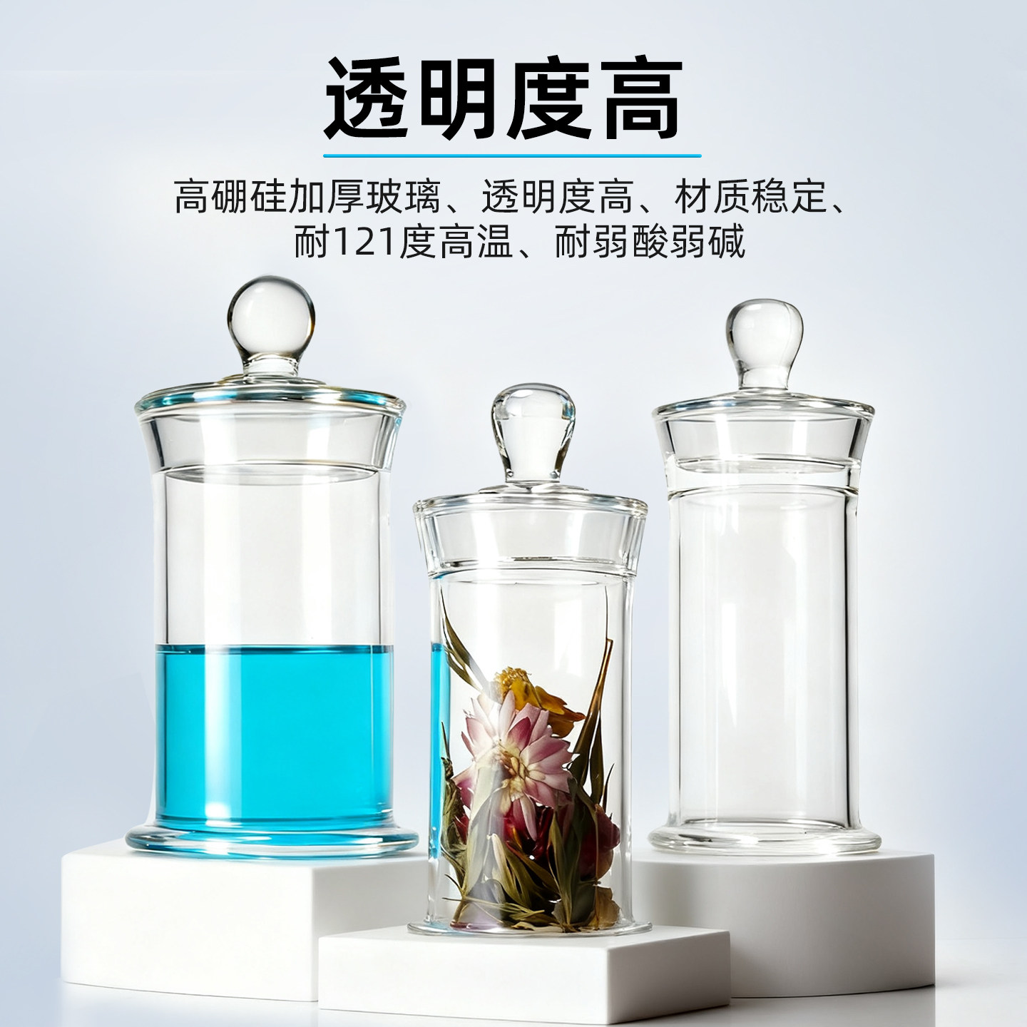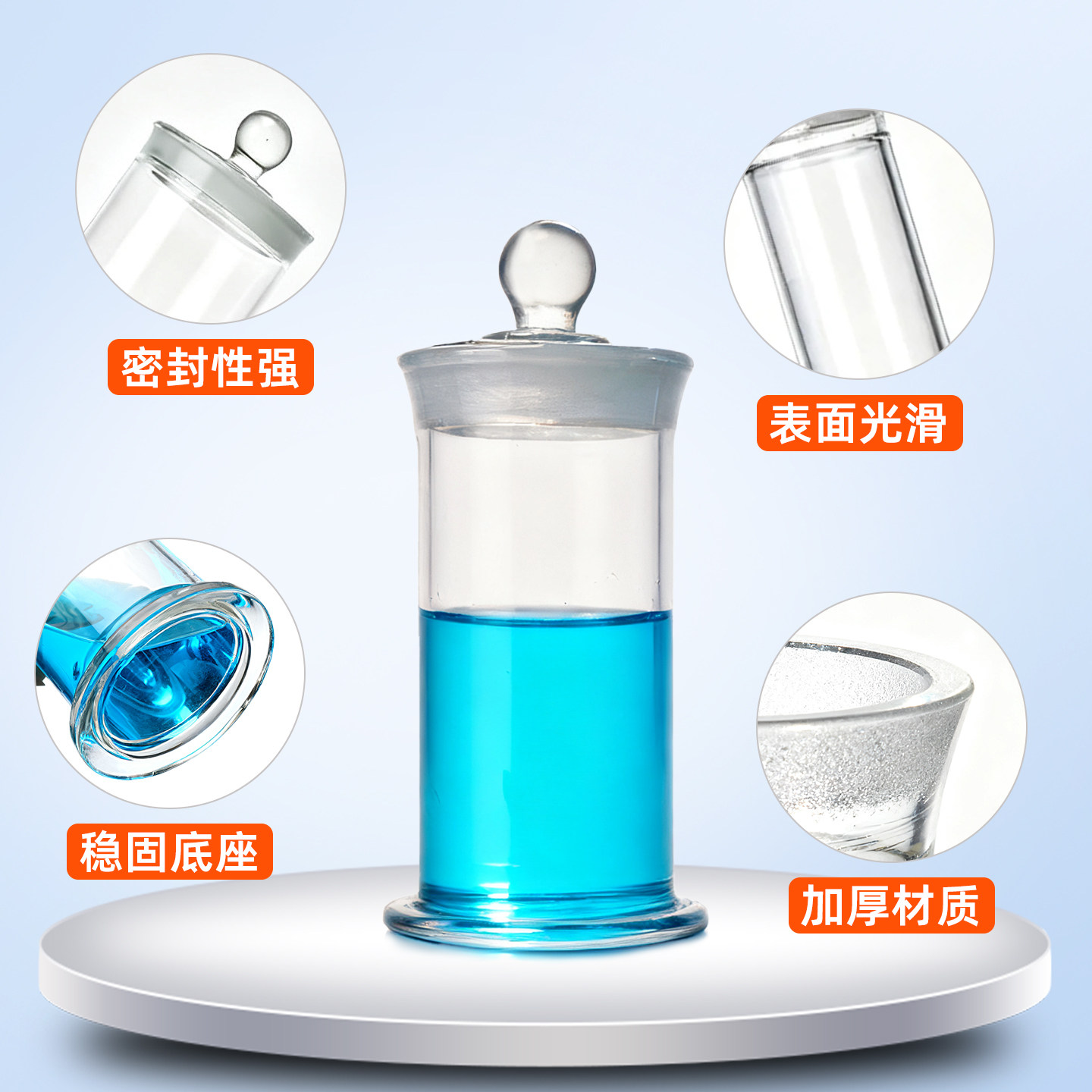 华鸥标本瓶密封玻璃样品瓶磨砂口加厚标准瓶实验室器皿展示瓶大小展缸储物罐密封罐玻璃标本缸福尔马林