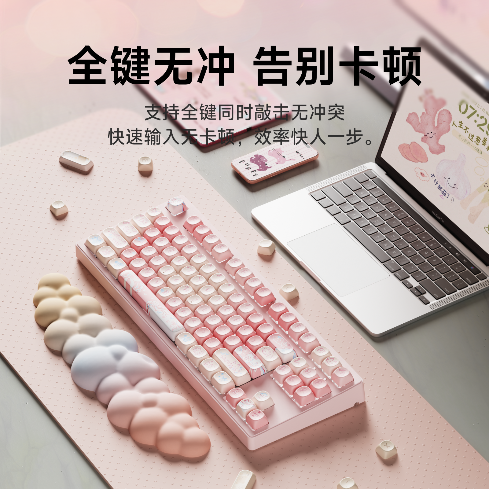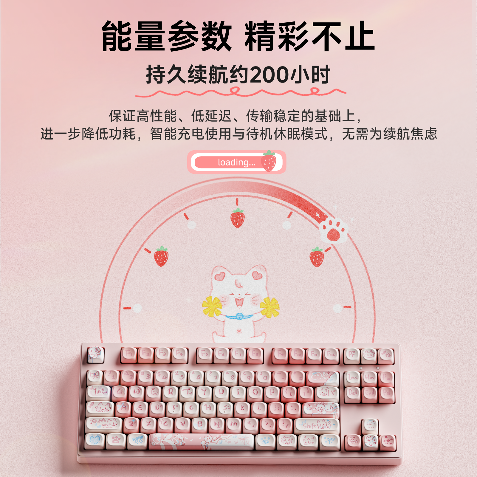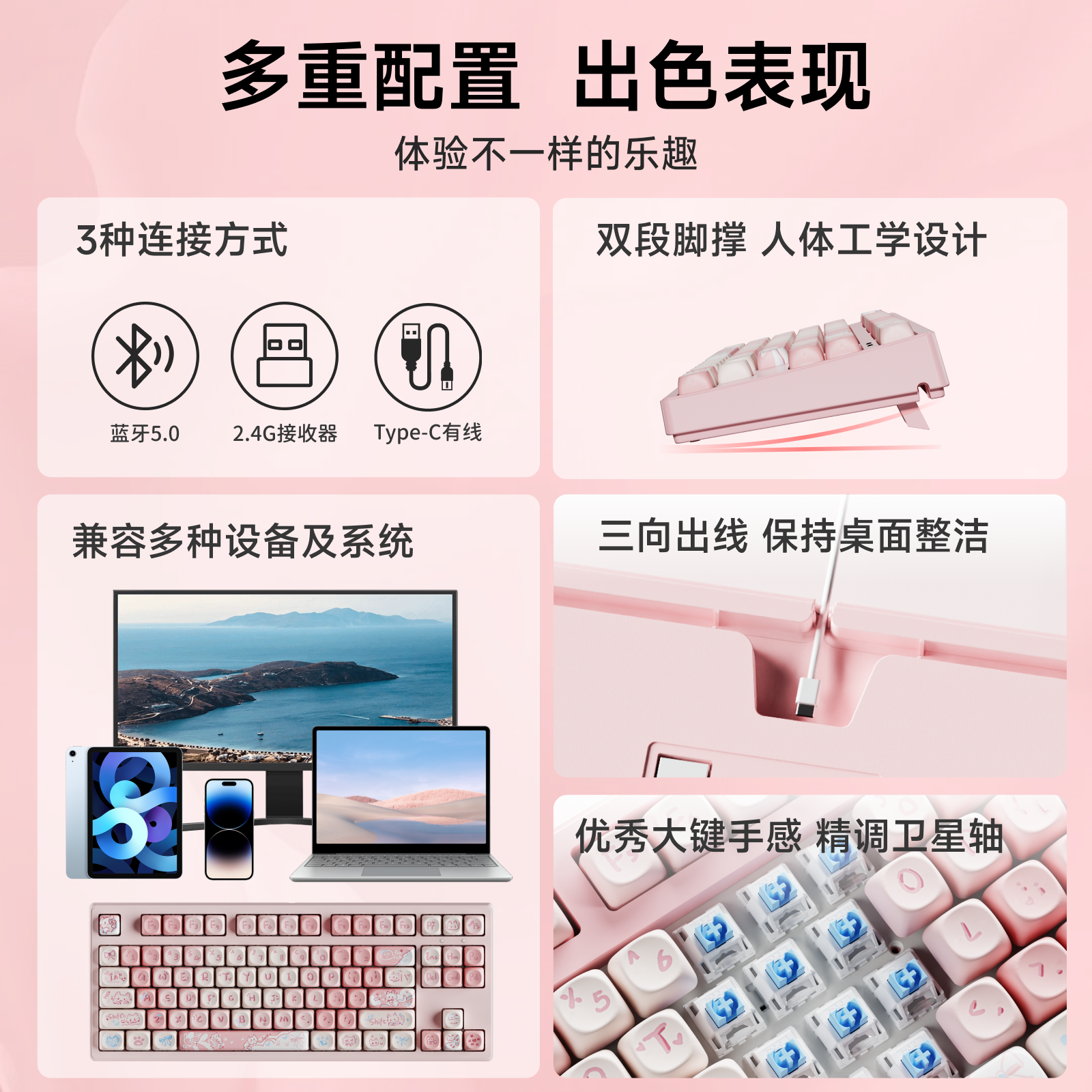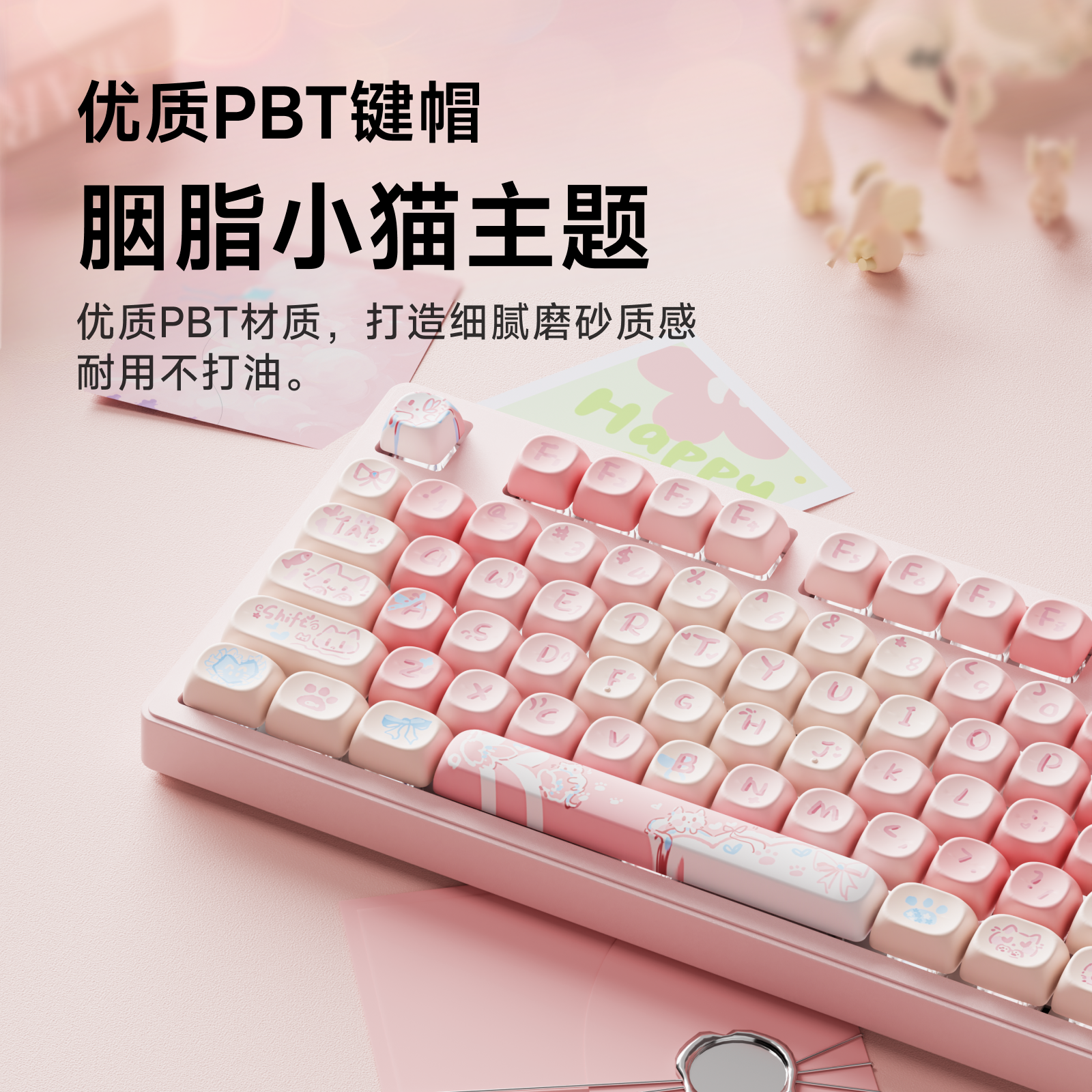 前行者MT87胭脂小猫机械键盘无线蓝牙鼠标套装女生办公可爱高颜值