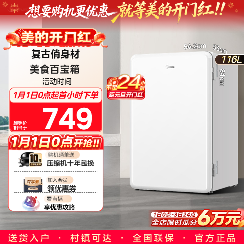 美的家用小冰箱出租房办公室116升单开门迷你一人冷藏冷冻冰箱