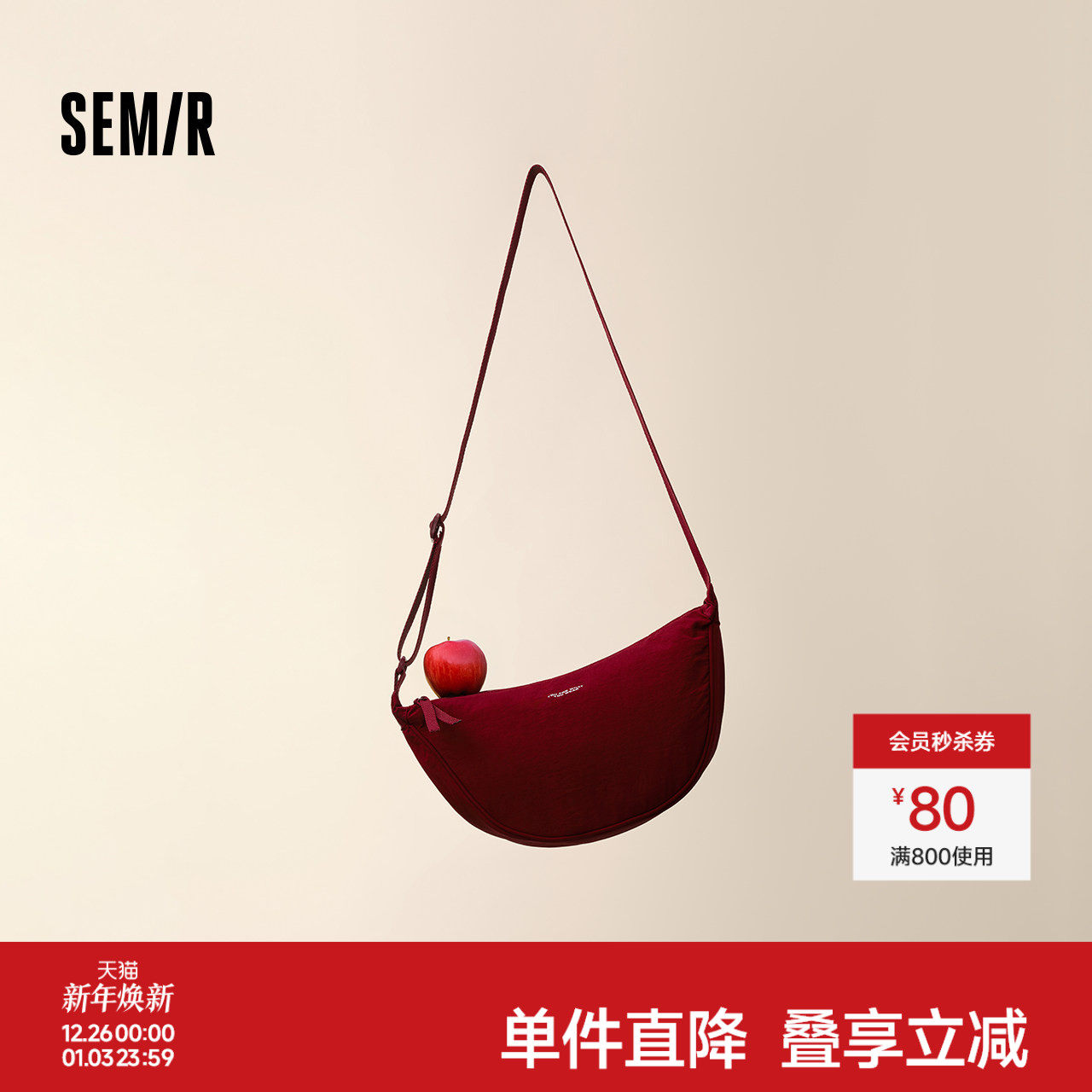 森马斜挎包男轻便户外休闲饺子包情侣腰包2025新款单肩月牙包酒红